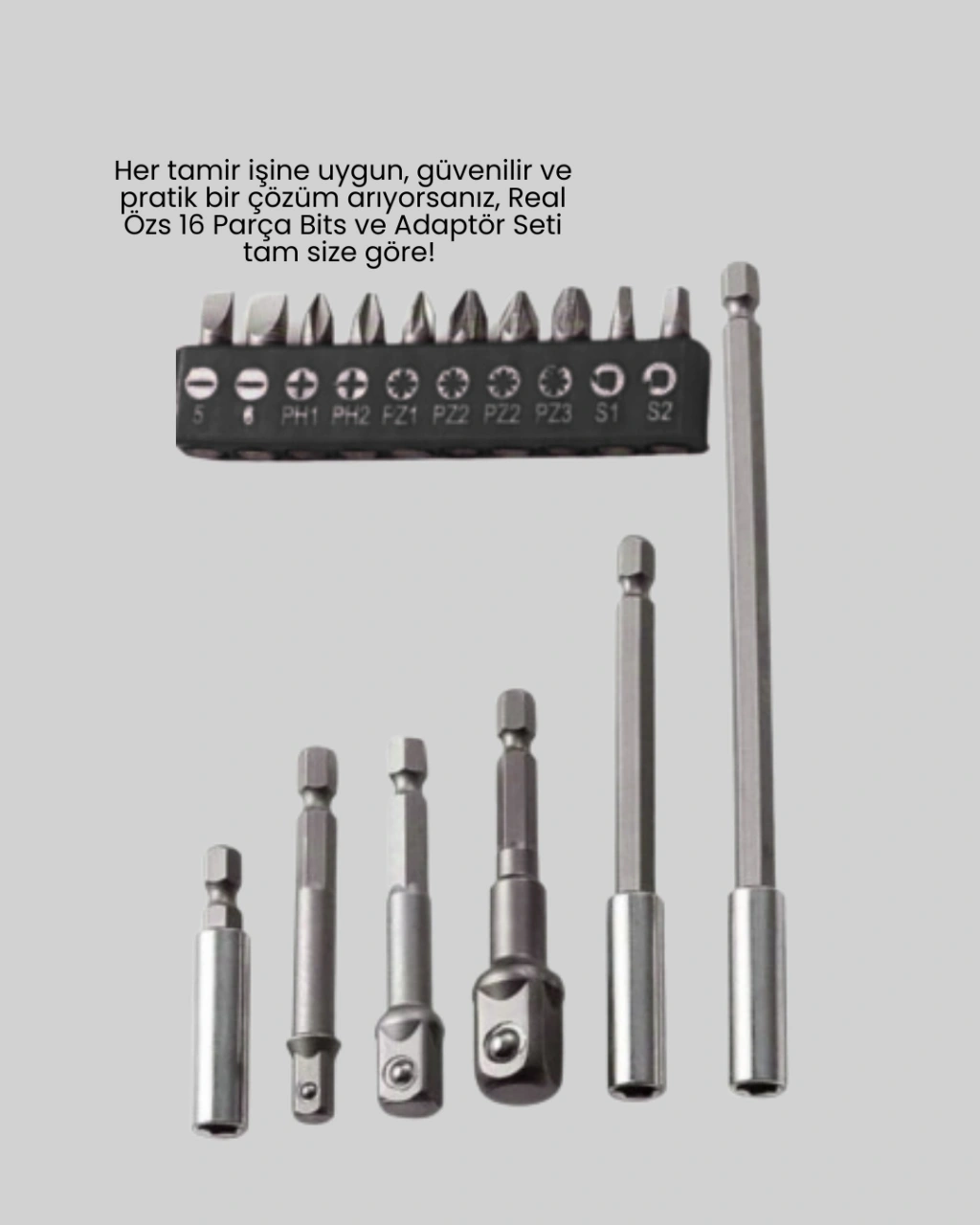 16 Parça Bits ve Adaptör Seti Vidalama Tamir Bakım Seti