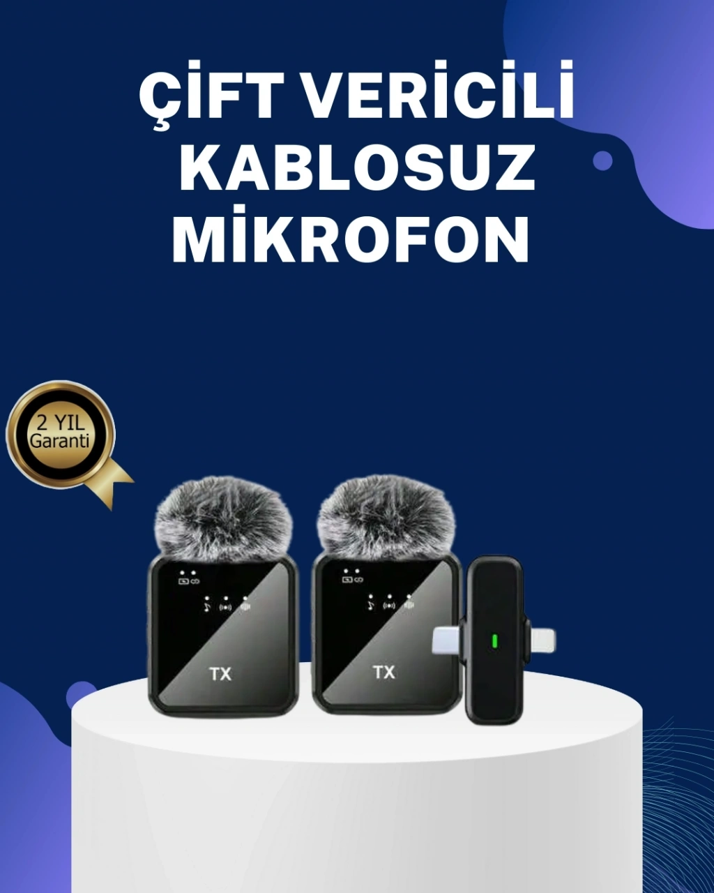 2in1 Kablosuz Yaka Mikrofonu iOS ve Android Uyumlu