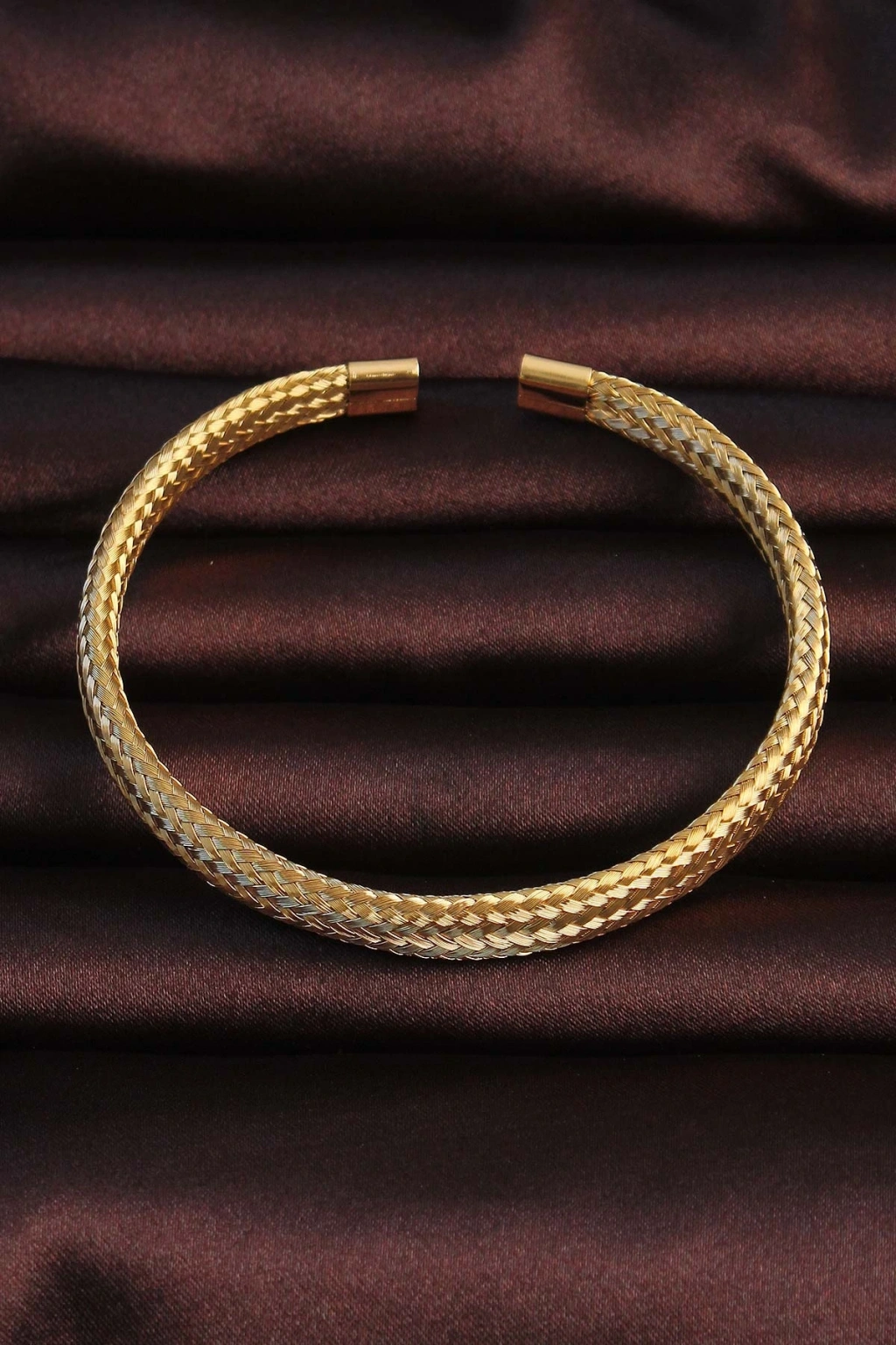 316L Çelik Altın Renk Hasır Görünüm Erkek Bileklik