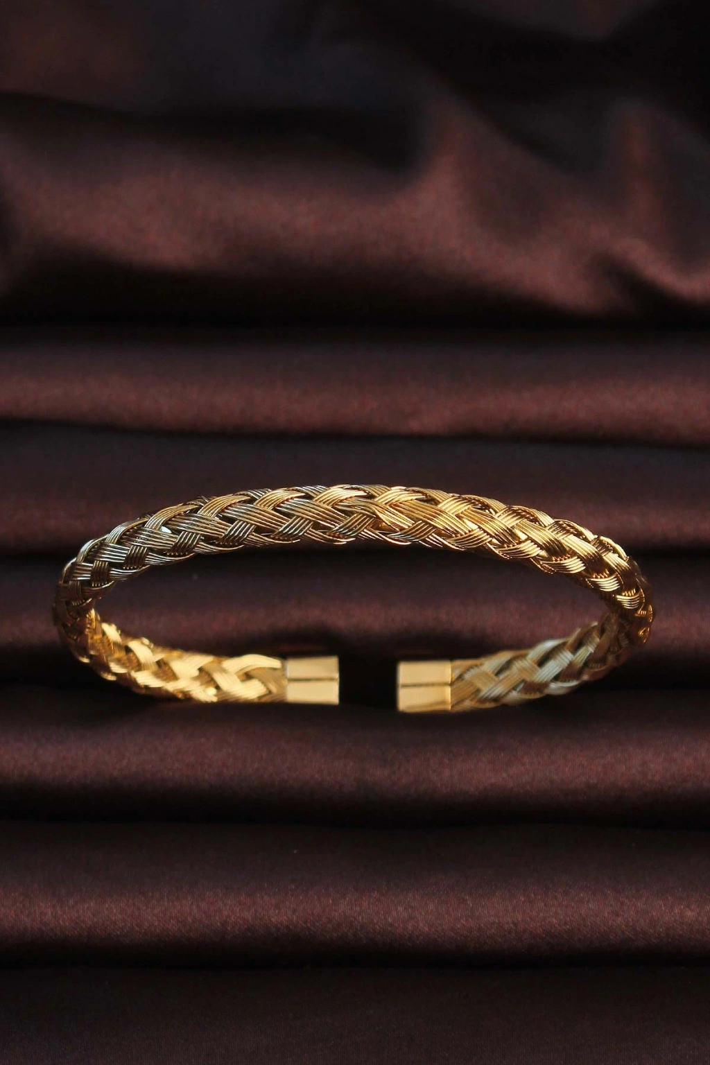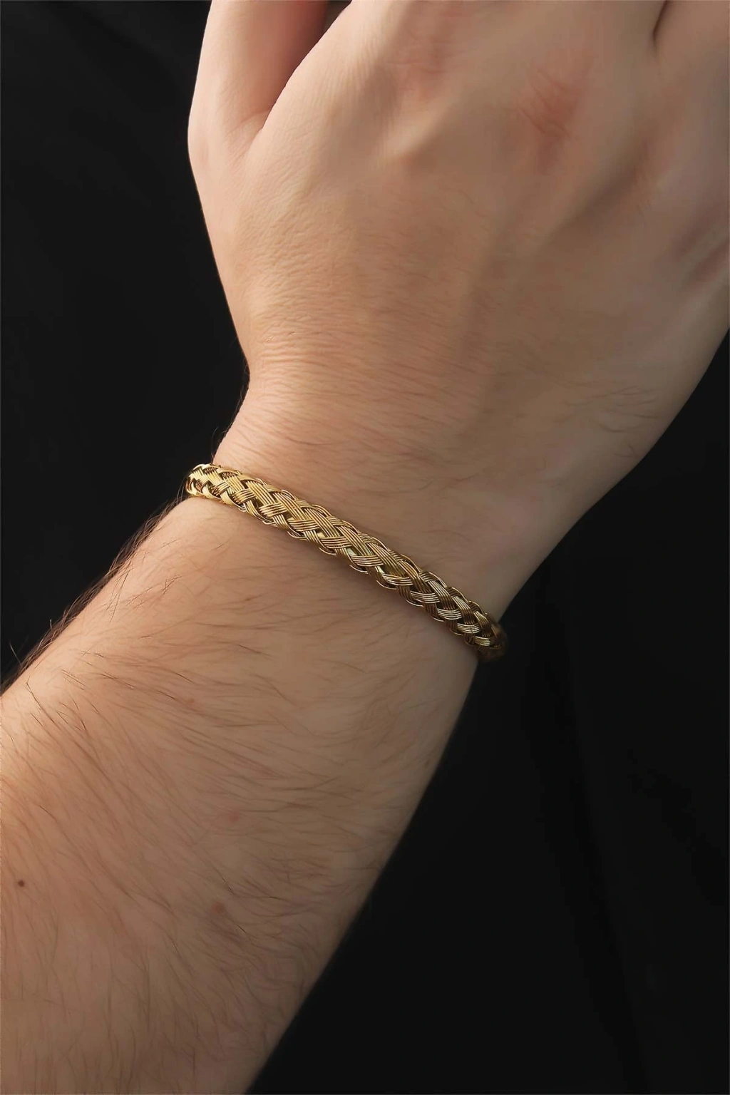 316L Çelik Altın Renk Kalın Yassı Örgü Model Erkek Bileklik