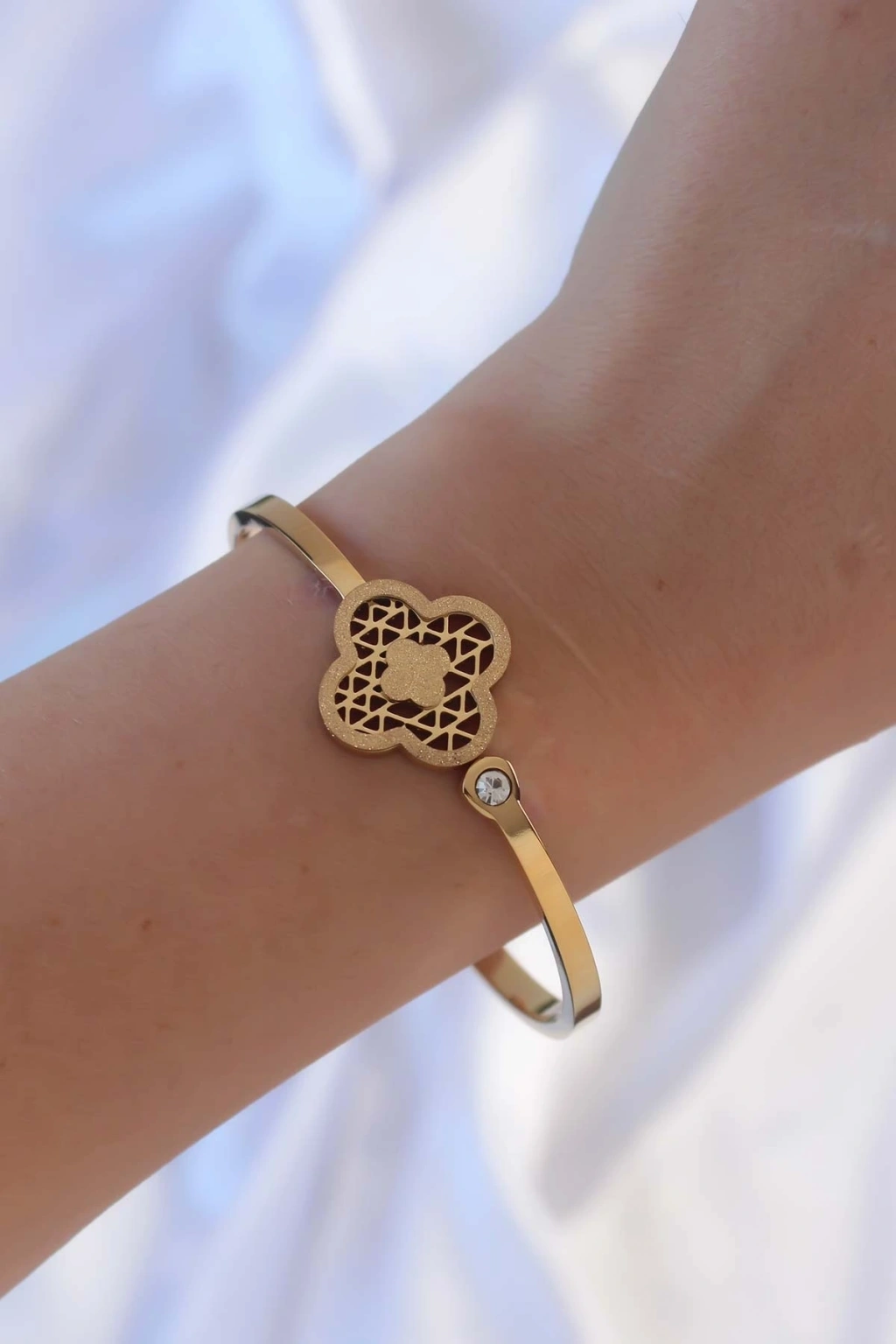 Pirinç Gold Renk VIP Seri Sıralı Yonca Model Zirkon Taşlı Kadın Bileklik