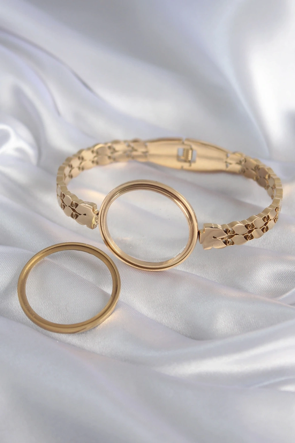 316L Çelik Gold Renk Arpa İşleme Açılabilir Fanus Model Kadın Kelepçe