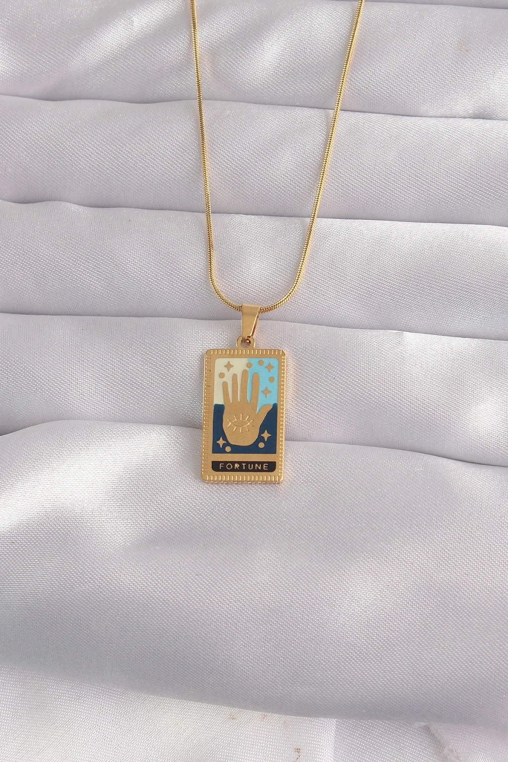 316L Çelik Gold Renk Karışık Mineli El Figür Tarot Kolye