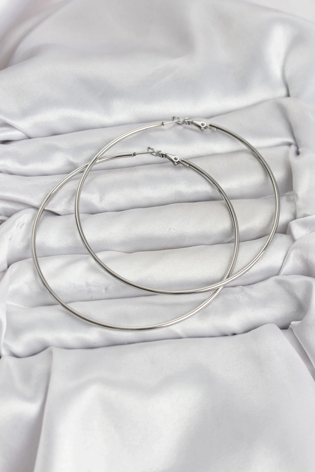 316L Çelik Gümüş Renk 75 mm Halka Küpe