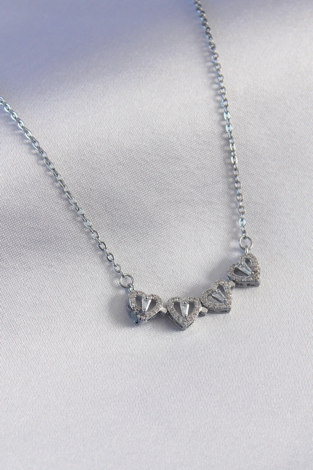 316L Çelik Zincir Gümüş Renk Şans Kolyesi Model Zirkon Taşlı Kadın Kolye