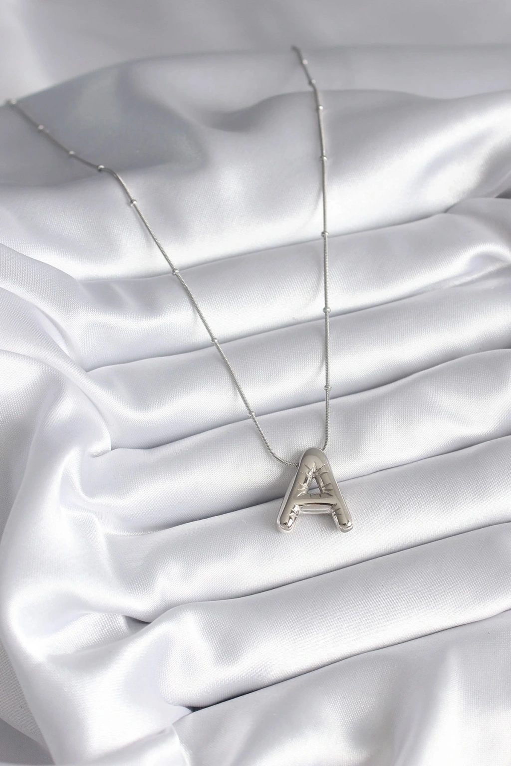 316L Çelik Gümüş Renk Bubble "A" Harf Model Kadın Kolye