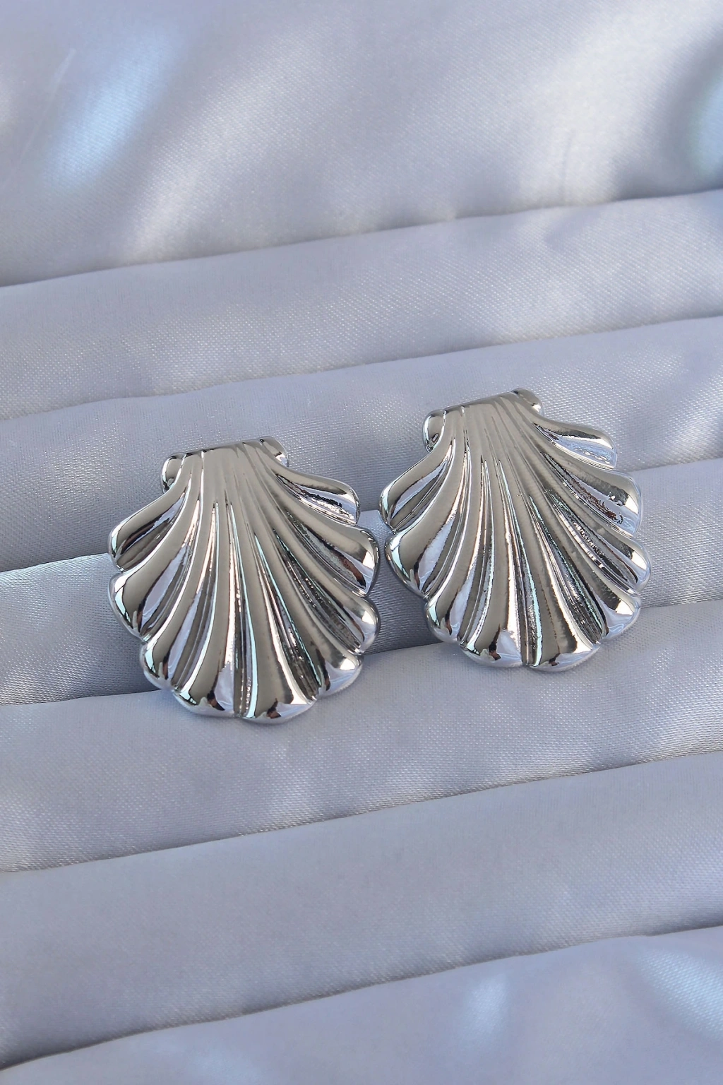 316L Çelik Gümüş Renk İstiridye Model Küpe