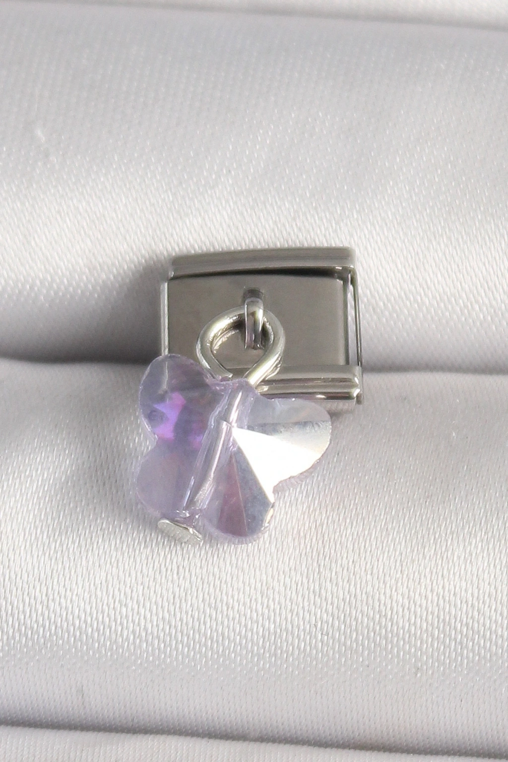 316L Çelik Gümüş Renk Pembe Zirkon Taşlı Kelebek Model Nomination Charm