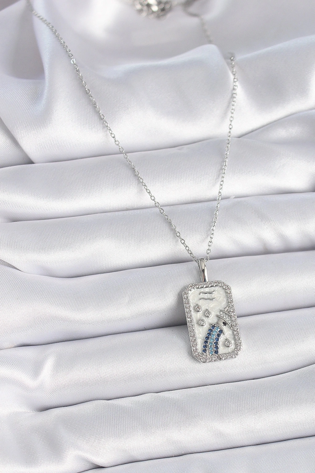 316L Çelik Zincir Gümüş Renk Deniz Tema Model Zirkon Taşlı Kadın Kolye