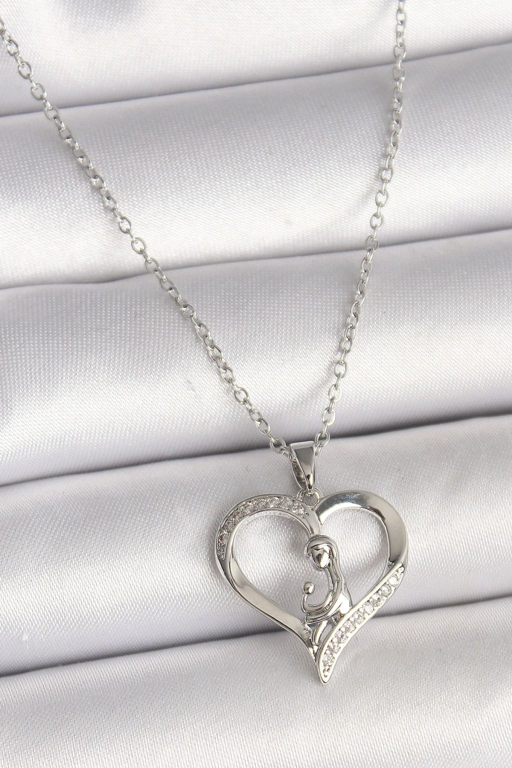 316L Çelik Gümüş Renk Zincir Zirkon Taş Detaylı Kalp Model Kadın Kolye