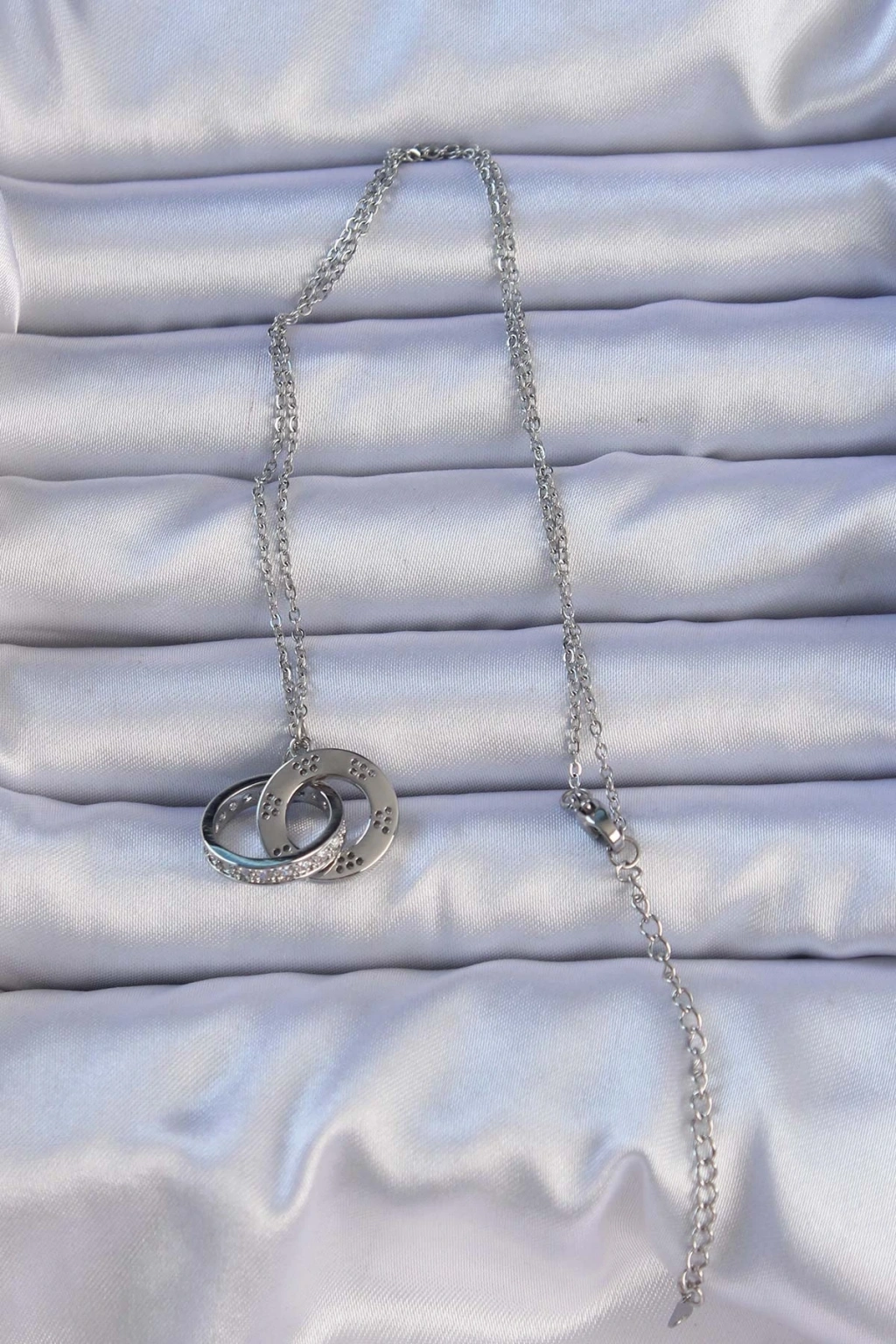 316L Çelik Gümüş Renk Zirkon Taşlı Kolye