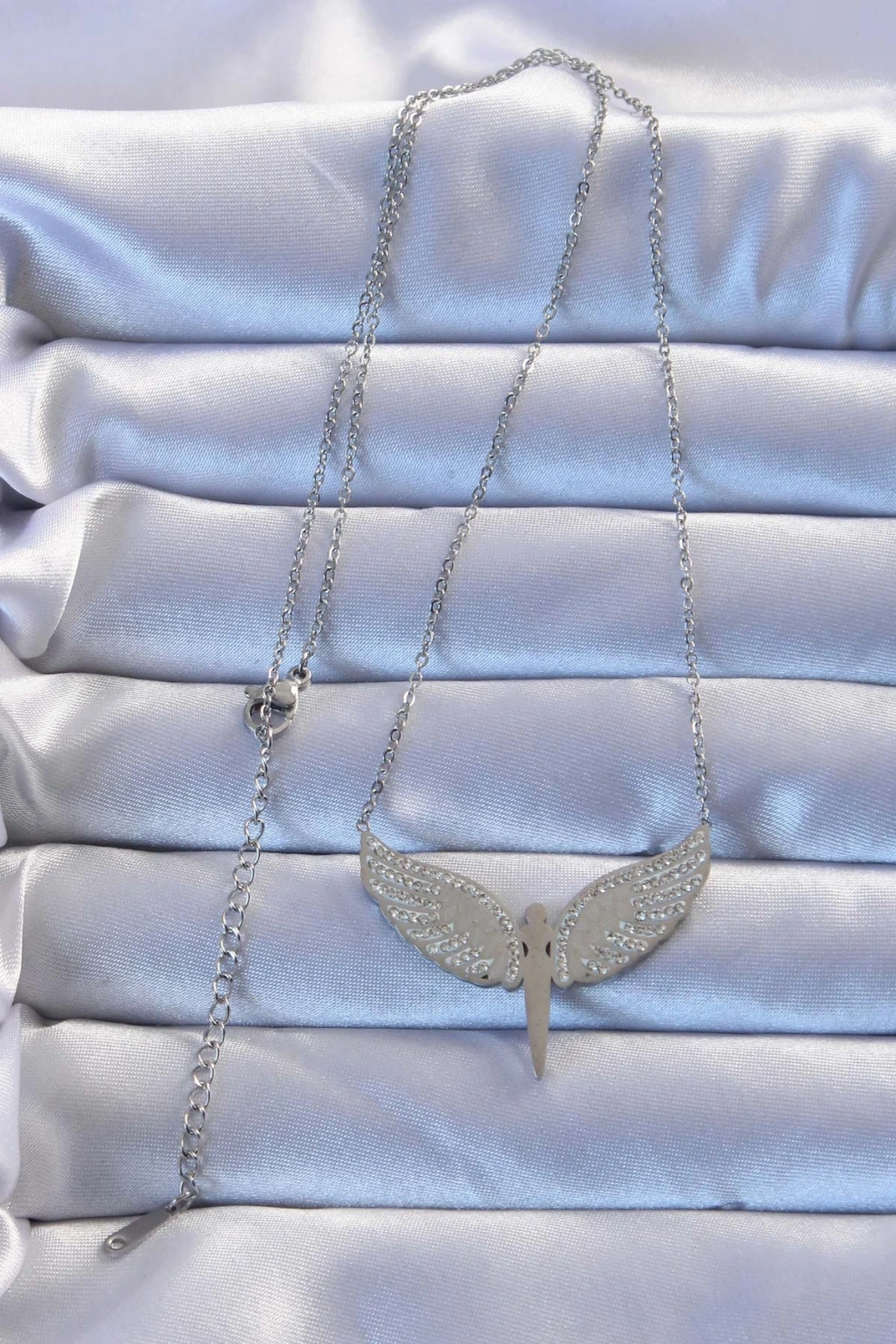 316L Çelik Gümüş Renk Zirkon Taşlı Mikail Kolye