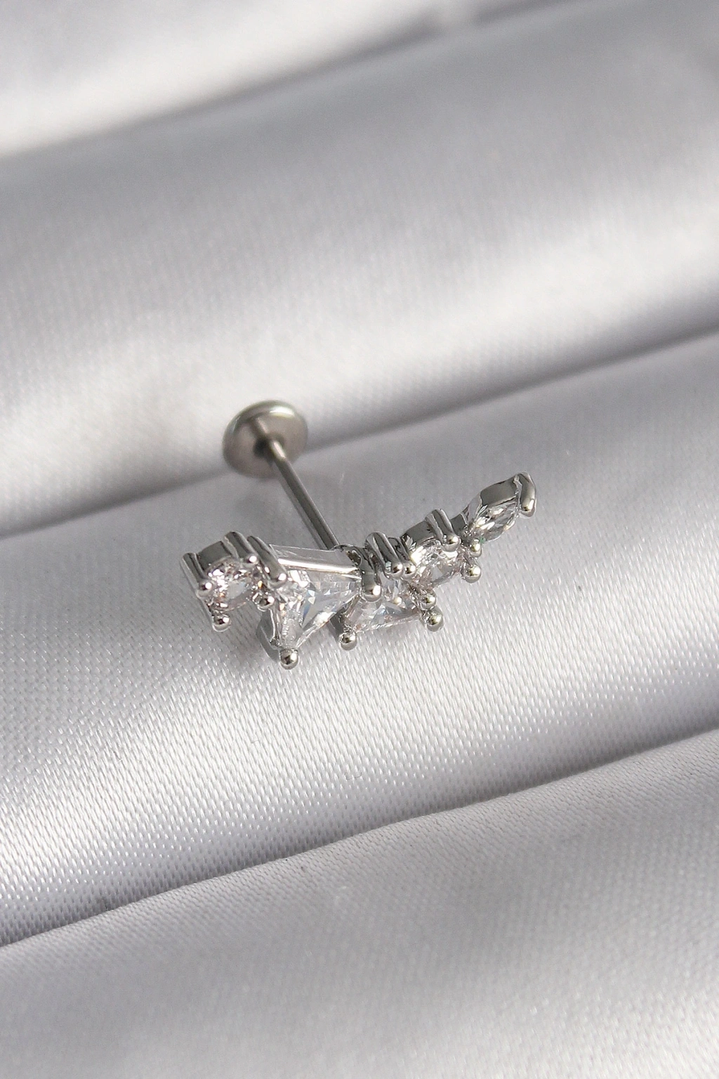 316L Çelik Gümüş Renk Zirkon Taşlı Kelebek Model Tragus Piercing