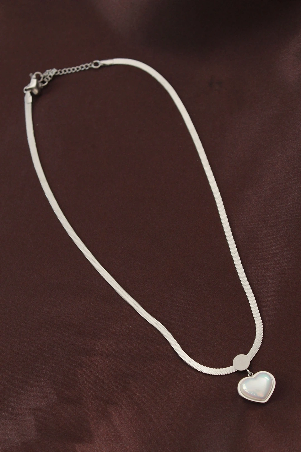 316L Çelik Zincir Gümüş Renk İncili Deniz Kabuğu Model Zirkon Taşlı Kadın Kolye