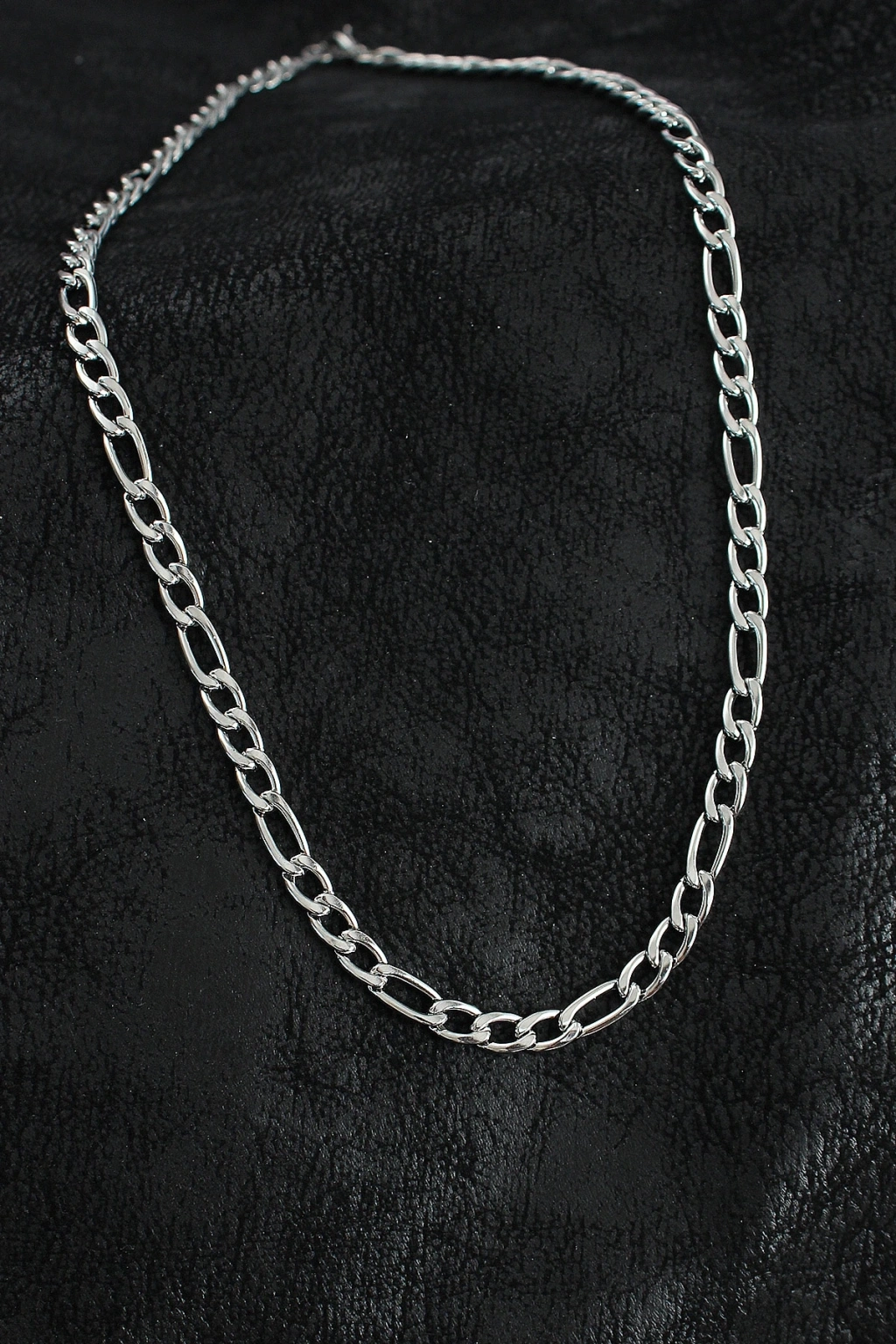 316L Çelik Kalın Figaro Zincir Model Gümüş Renk Erkek Kolye