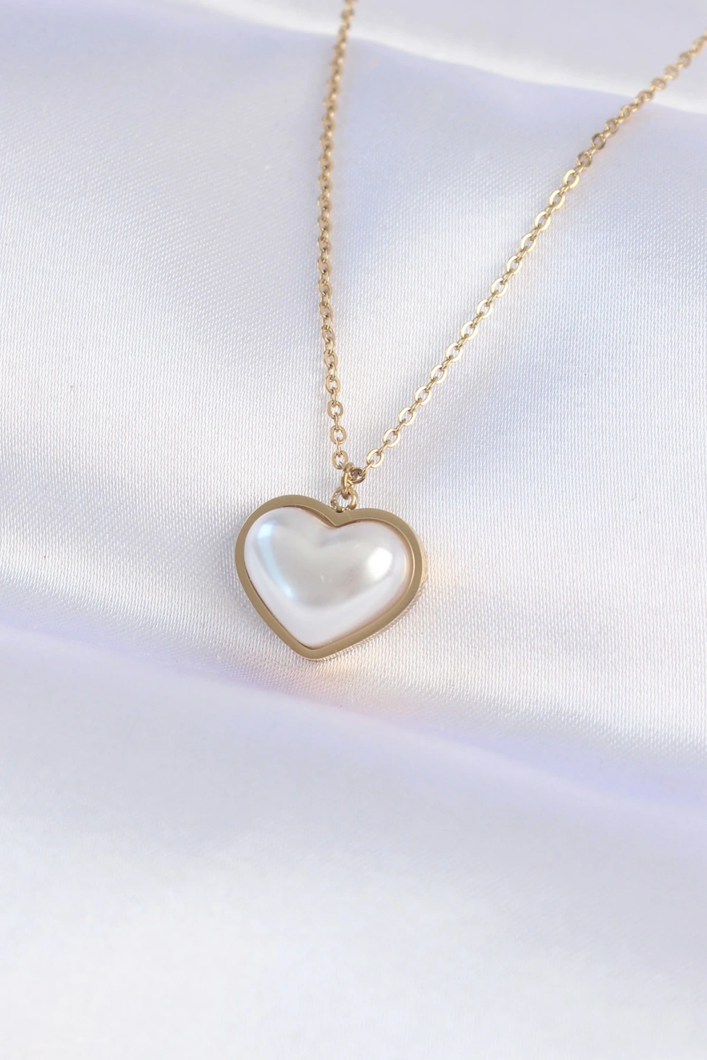 316L Çelik Zincir Gold Renk Beyaz Taşlı Bubble Kalp Kolye