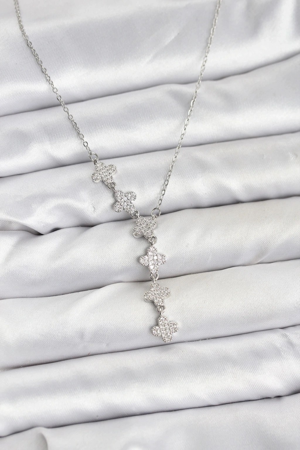 316L Çelik Zincir Gümüş Renk Yonca Model Kadın Kolye