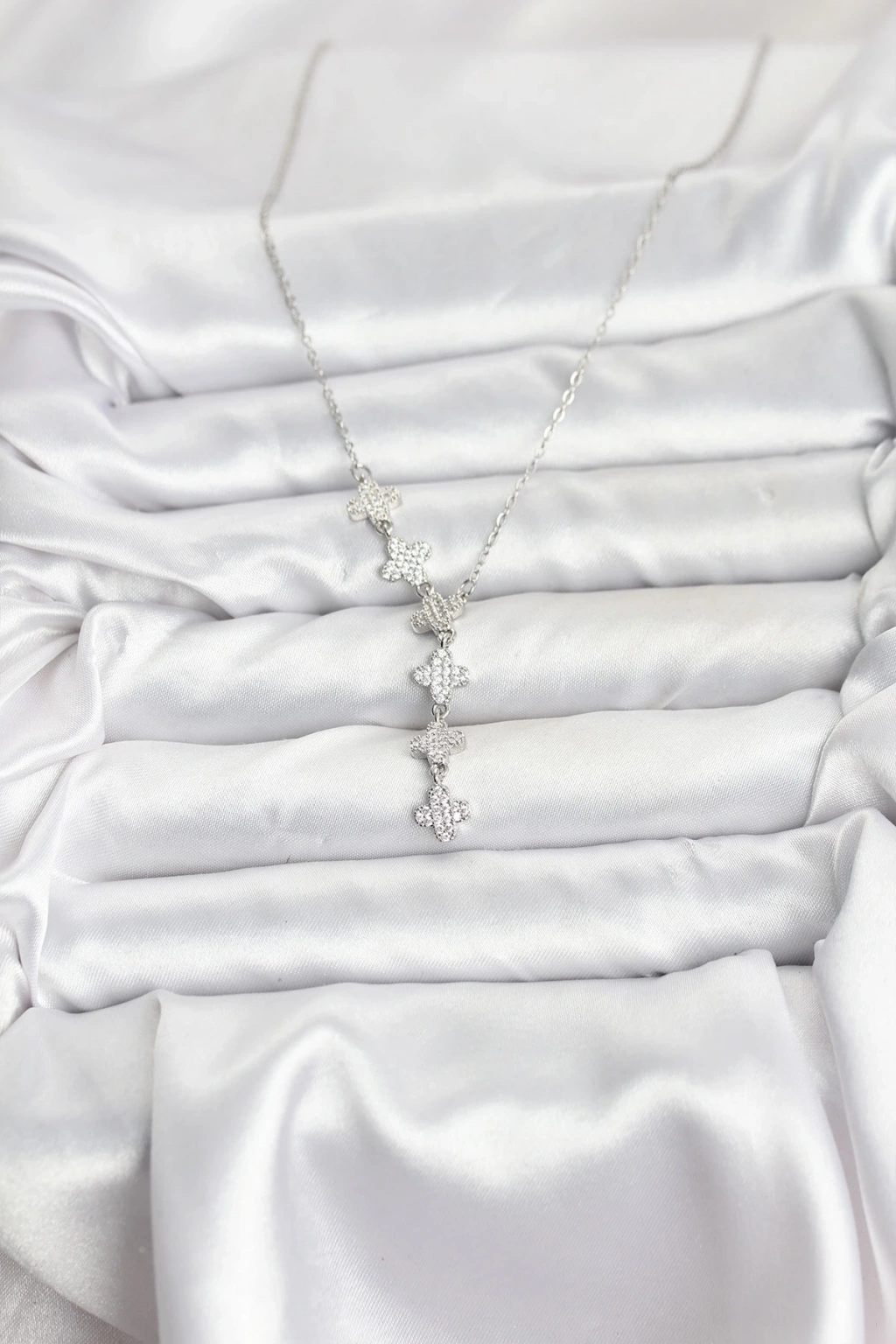 316L Çelik Zincir Gümüş Renk Şans Kolyesi Model Zirkon Taşlı Kadın Kolye
