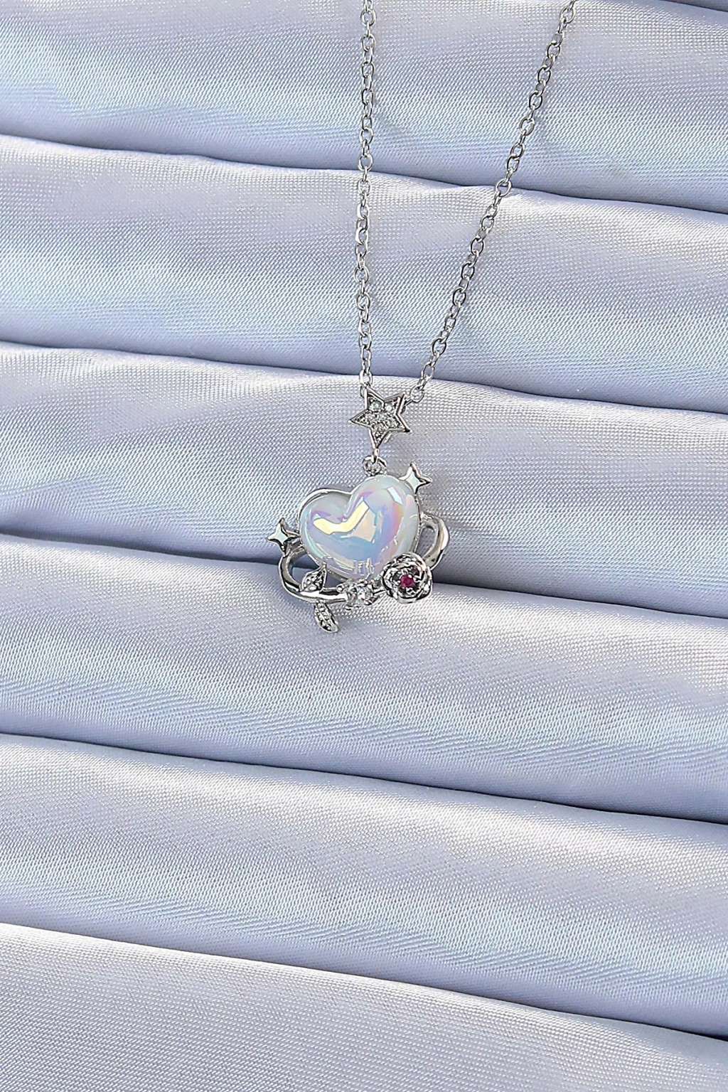 316L Çelik Zincir Gümüş Renk Zirkon Taşlı Gezegen Görünümlü Kalp Kolye