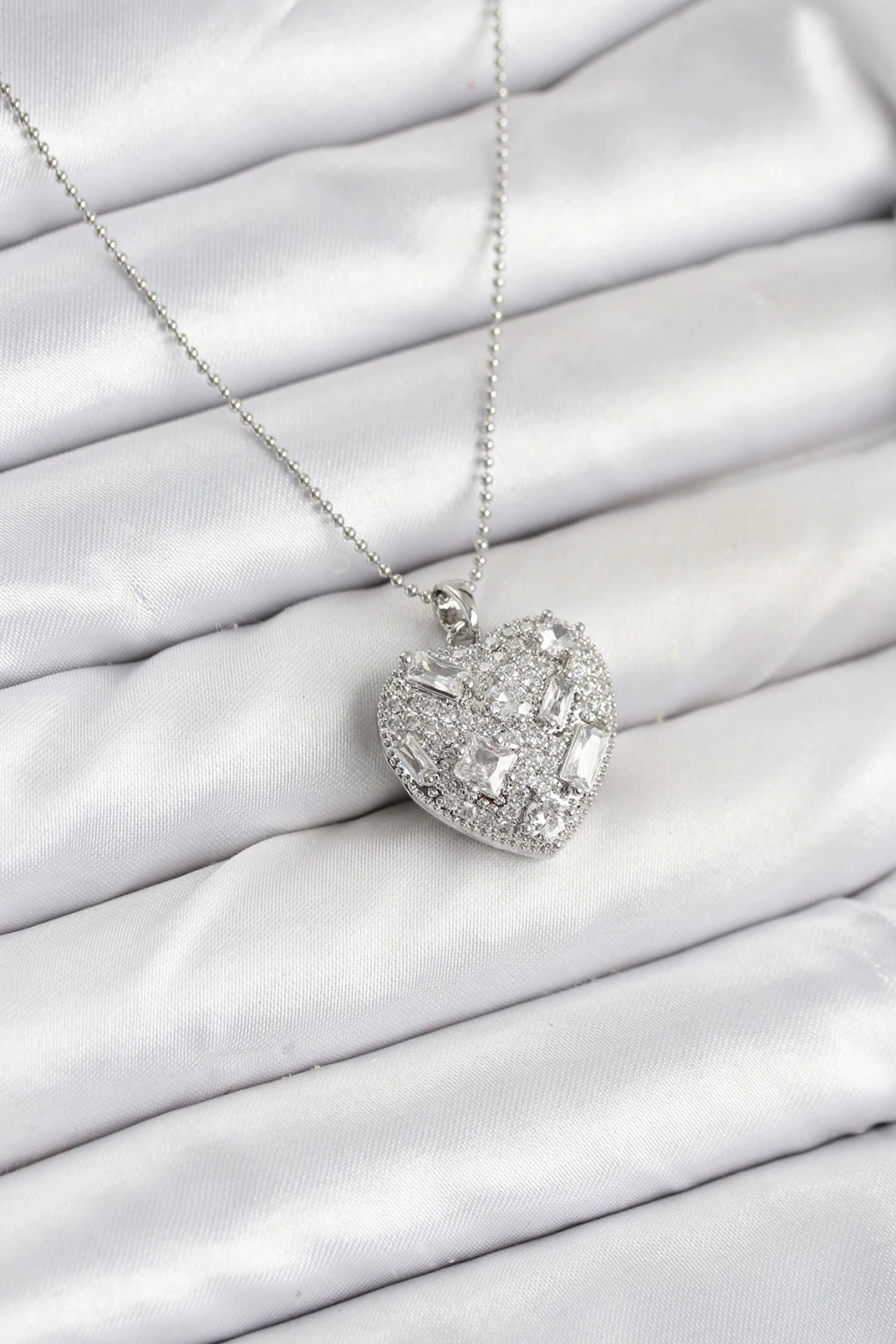 316L Çelik Zincir Gümüş Zirkon Taşlı Kalpli Kadın Kolye