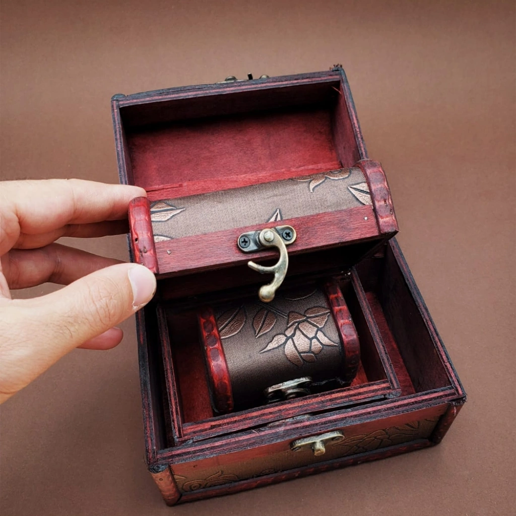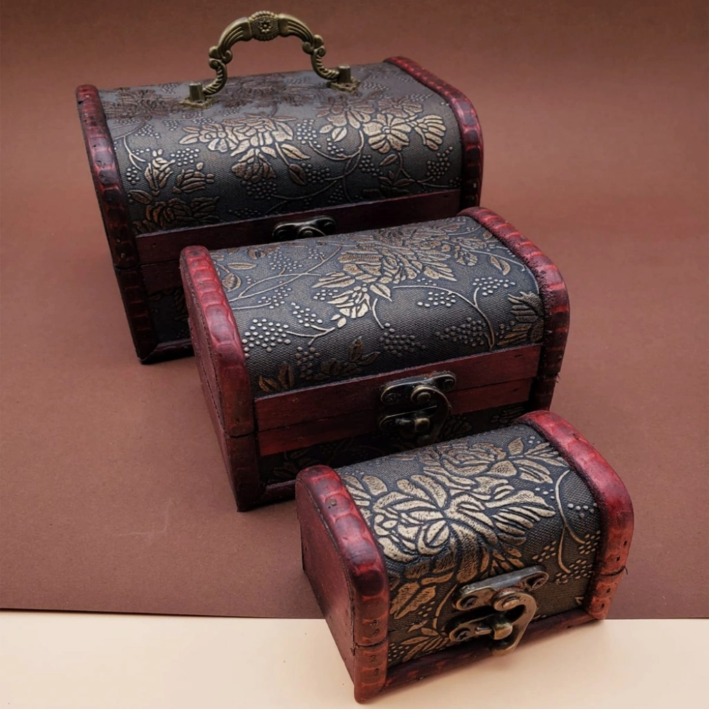 Ahşap Sandık Kutu Üzerinde Desenler Bulunmkatadır.