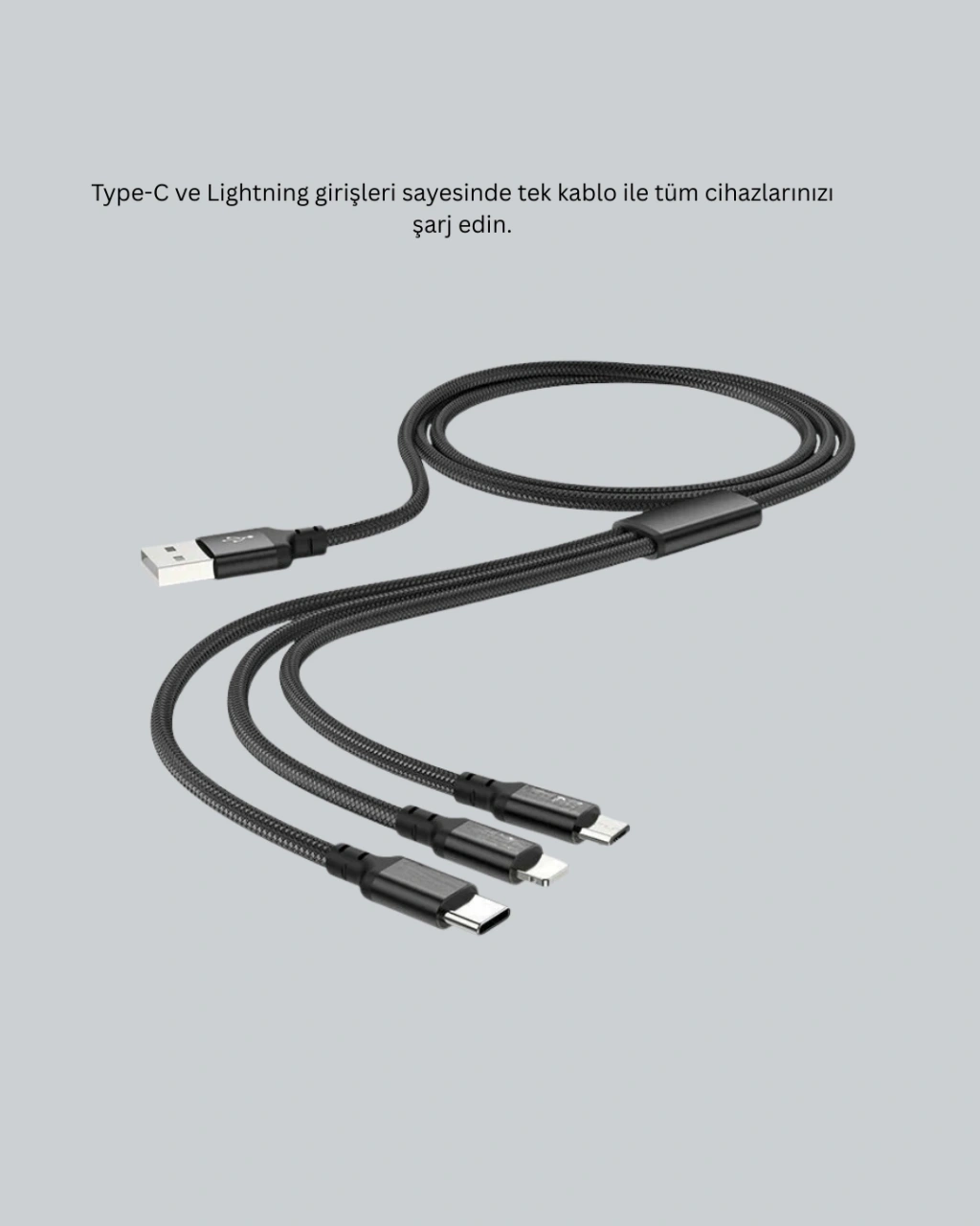 3 Başlıklı Hızlı Şarj Kablosu Metal Alaşımlı Dayanıklı ve Akıllı Çipli
