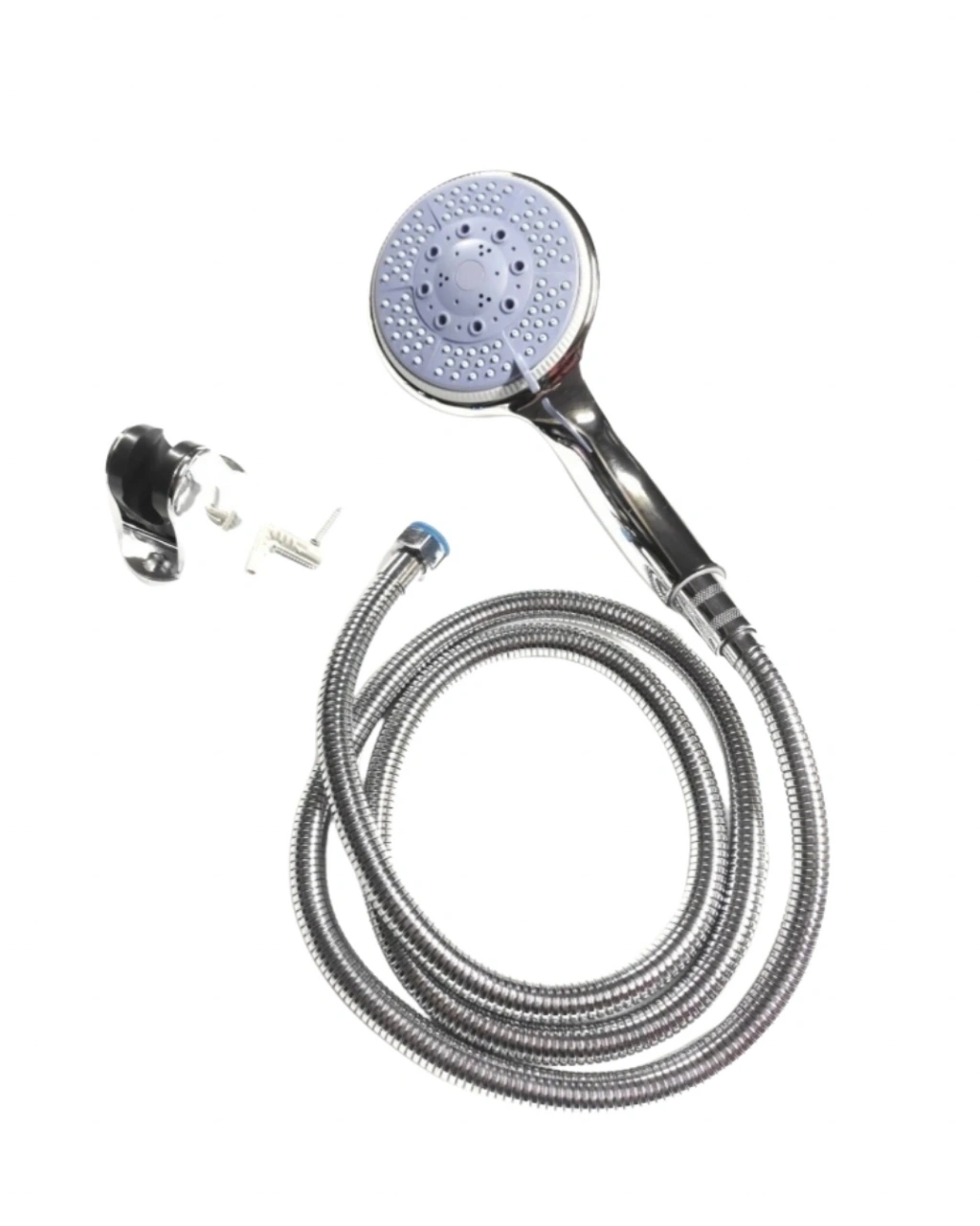 4 Kademeli Mavi Duş Seti El Duşu Başlığı Spiral Hortum ve Duvar Askısı
