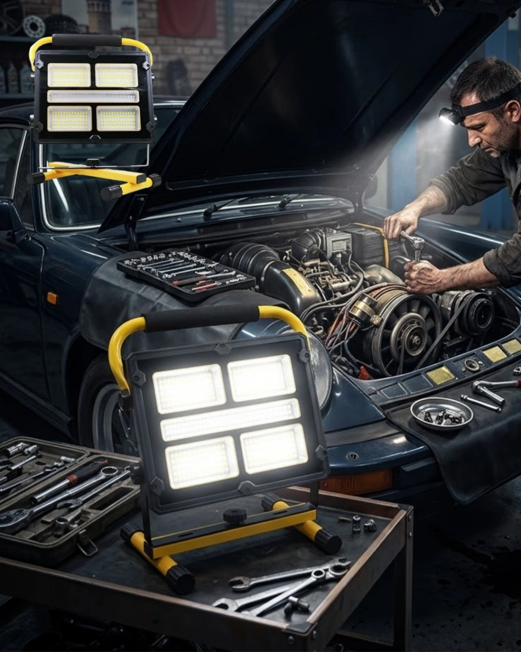Yüksek Lümenli Şarjlı El Feneri 9000mAh Güçlü Işık ve Taşıma Çantalı Set