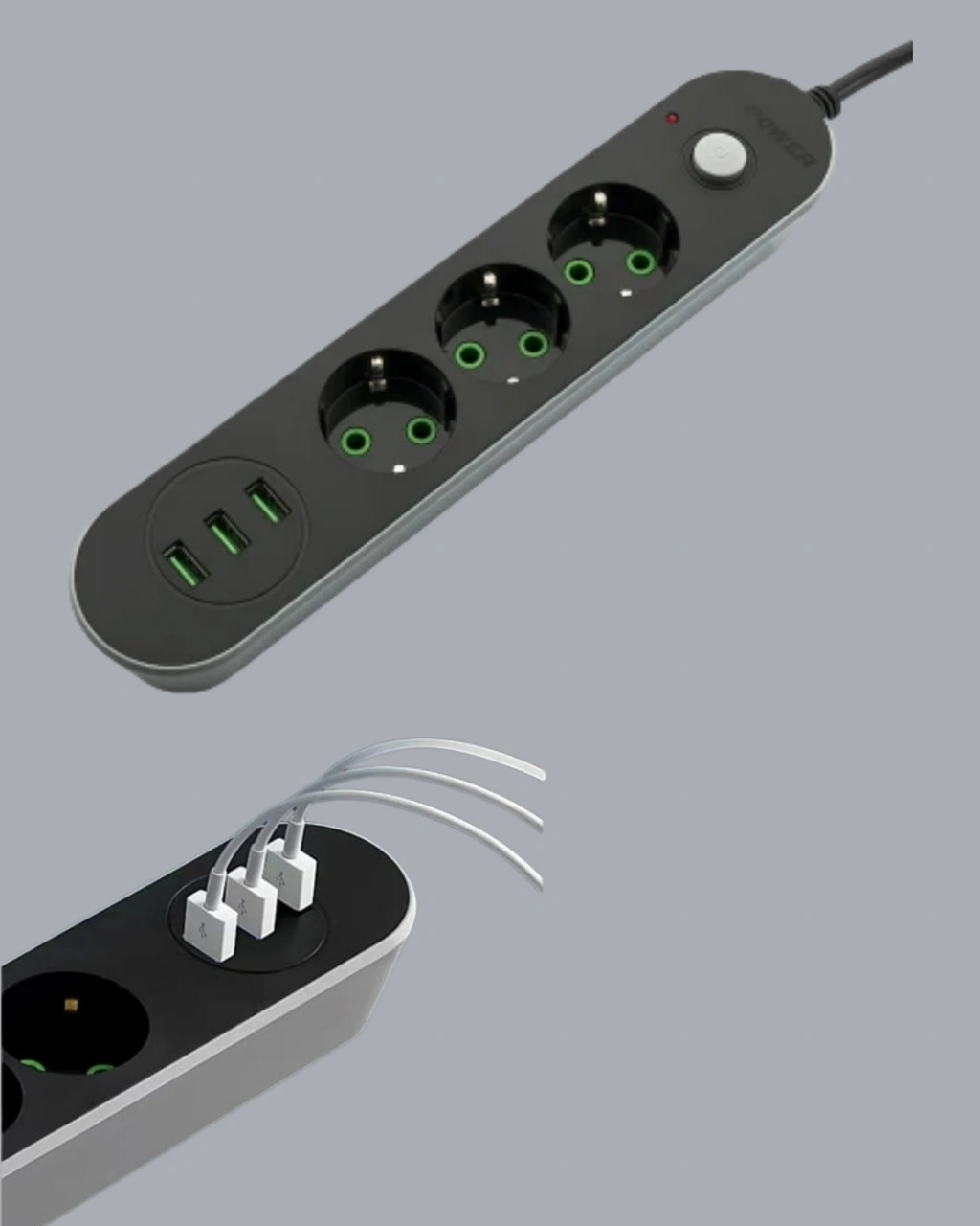 Akım Korumalı Anahtarlı USB Girişli Üçlü Priz