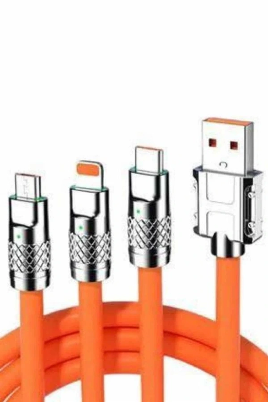 3 Başlıklı Hızlı Şarj Kablosu Metal Alaşımlı Dayanıklı ve Akıllı Çipli