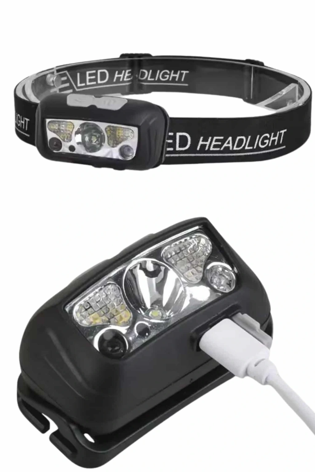 Hareket Sensörlü Şarj Edilebilir Kafa Lambası LCD Göstergeli