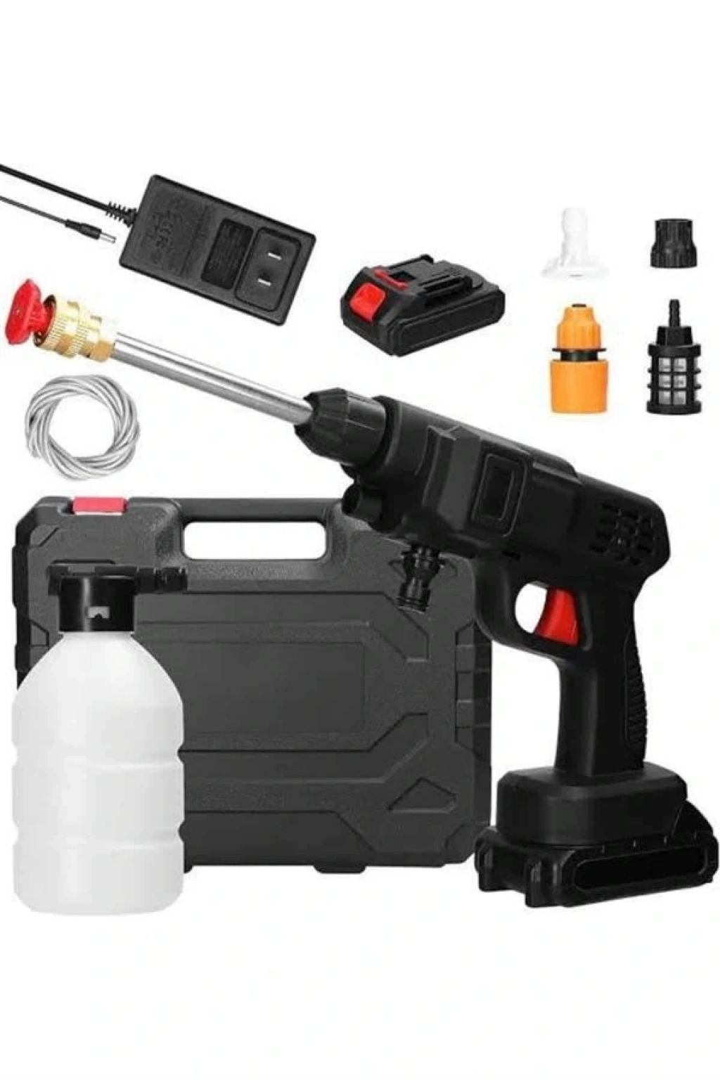Taşınabilir Basınçlı Yıkama Makinesi – 5m Hortumlu, Köpük Şişeli, 48V Güçlü