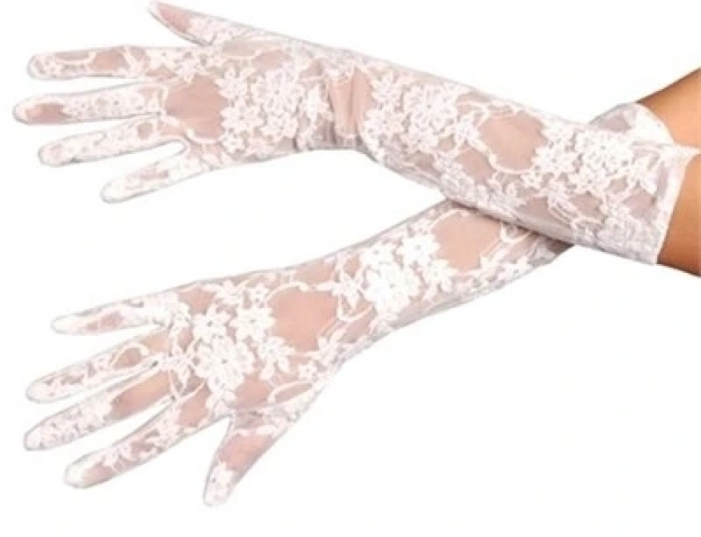 Beyaz Renk Orta Boy Dantelli Eldiven (5047)