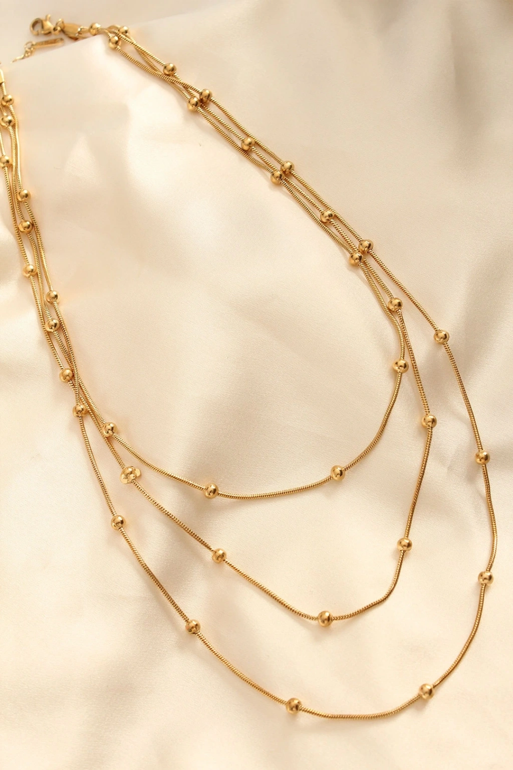 Çelik Altın Renkli Topçuk Tasarımlı Çoklu Kolye