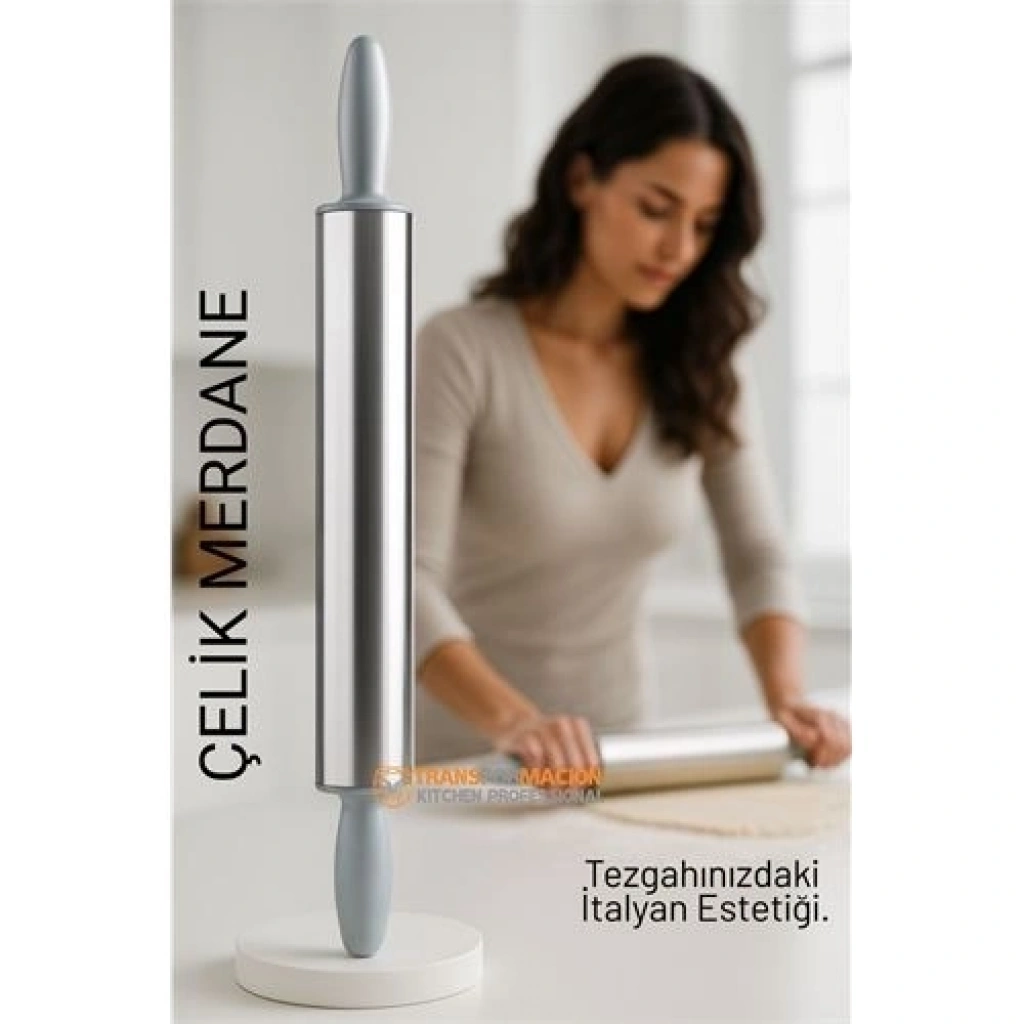 Çelik Merdane - Profesyonel Hamur Açma Merdanesi - 304 Paslanmaz Çelik Mutfak Merdanesi