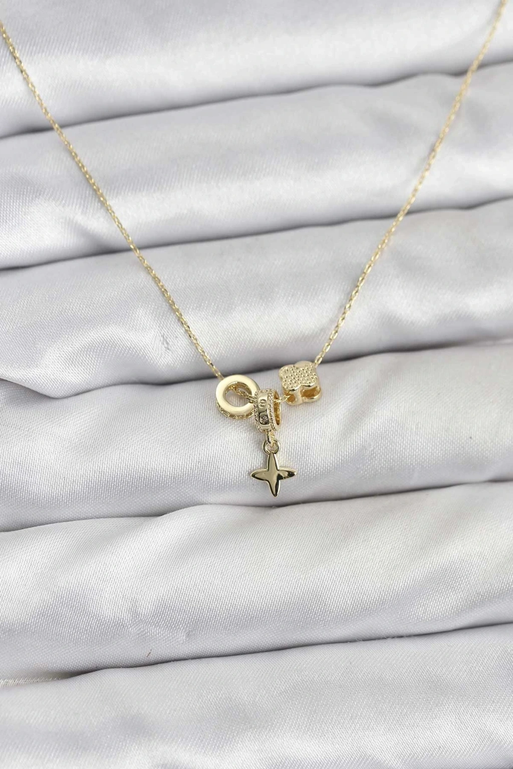 Gold Renk Pirinç Minimal Charmlı Kadın Kolye
