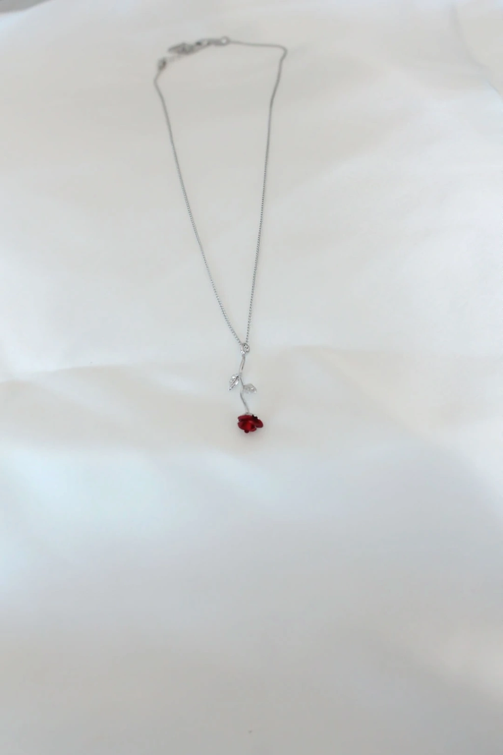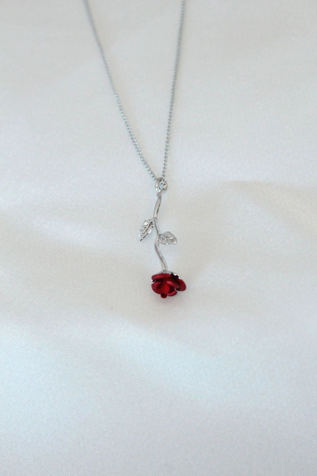 Gümüş Kaplama Kırmızı Gül Figürlü Kadın Kolye