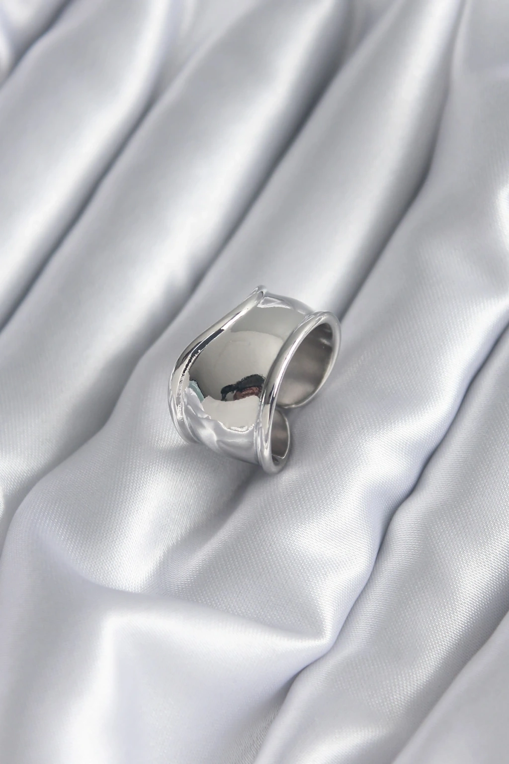 Pirinç Gümüş Renk Beyaz Gül Model Ayarlanabilir Kadın Yüzük