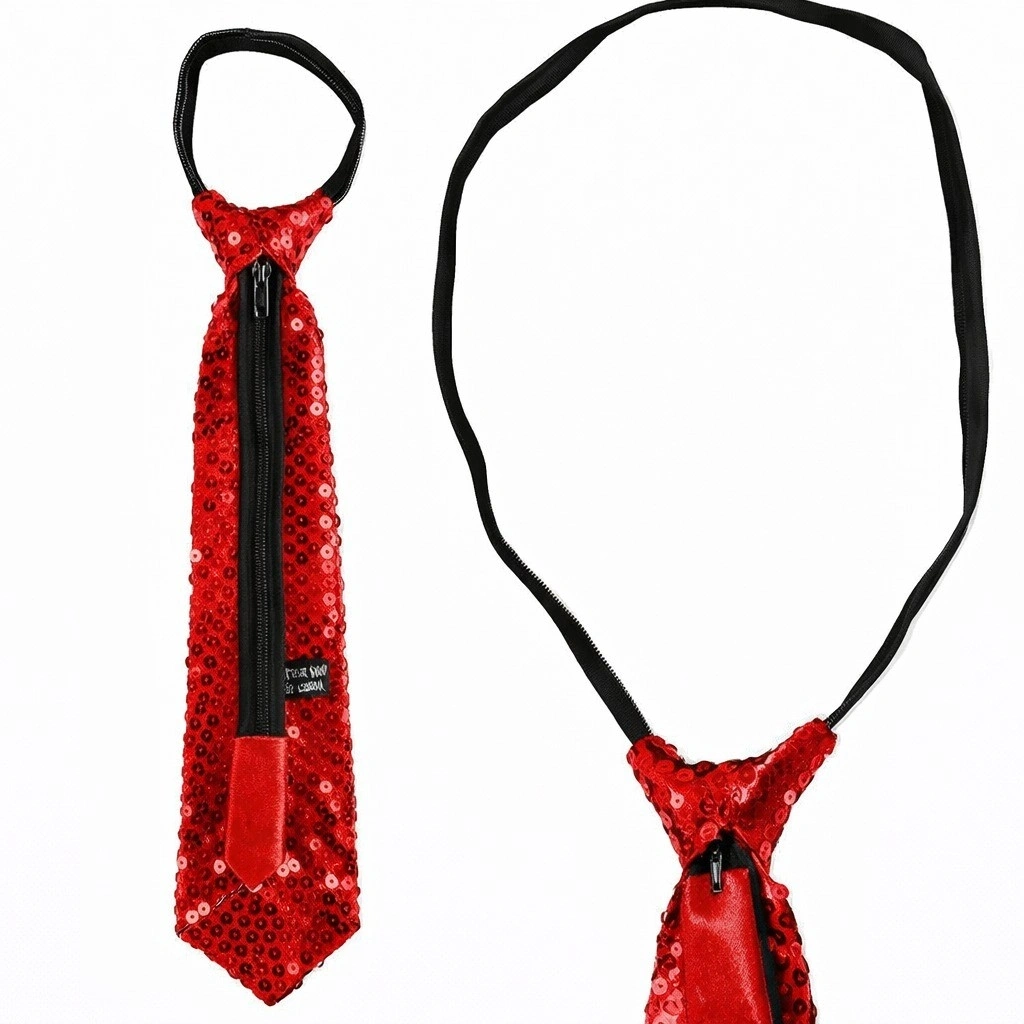 Parlak kırmızı rengi ve göz alıcı pul payet kaplaması ile bu parti kravatı, bulunduğunuz ortamda tüm dikkatleri üzerinize çeker. Işığı yansıtan yüzeyi sayesinde sahne, doğum günü, yılbaşı, konsept parti ve özel organizasyonlarda enerjik bir görünüm sunar.