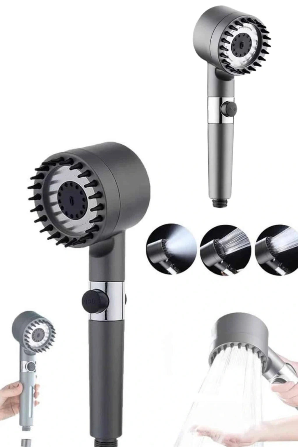 4 Modlu El Duşu Başlığı Spiral Hortumlu Duş Seti Banyo Aksesuarı