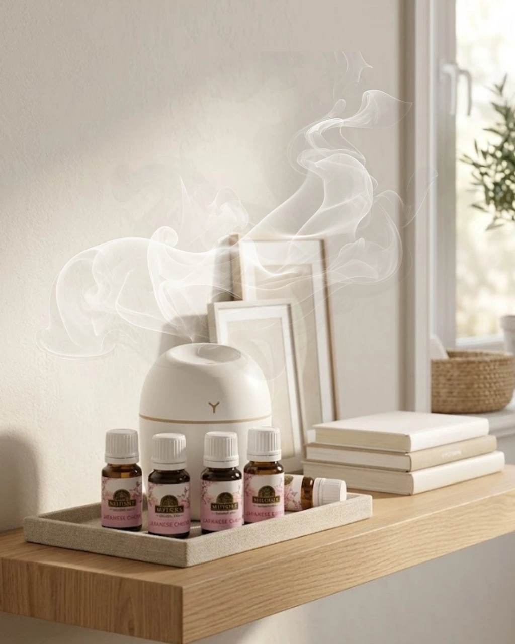 Aromaterapi Hava Nemlendirici USB Çalışan Sessiz LED Işıklı Cihaz 5 Esans Hediyeli