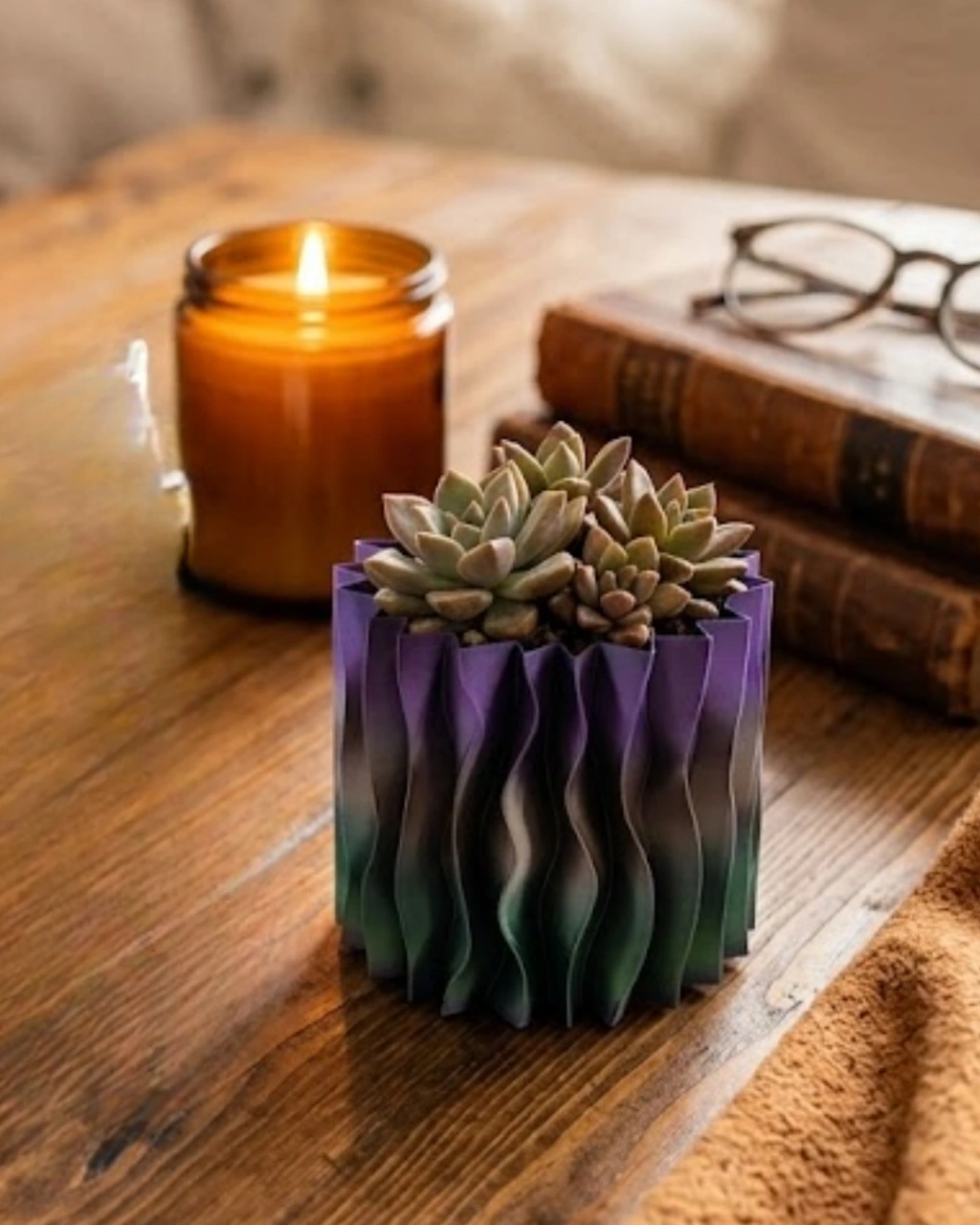 Minimalist Dalgalı Tasarımlı Mor Dekoratif 3D Vazo Masa Dekoru