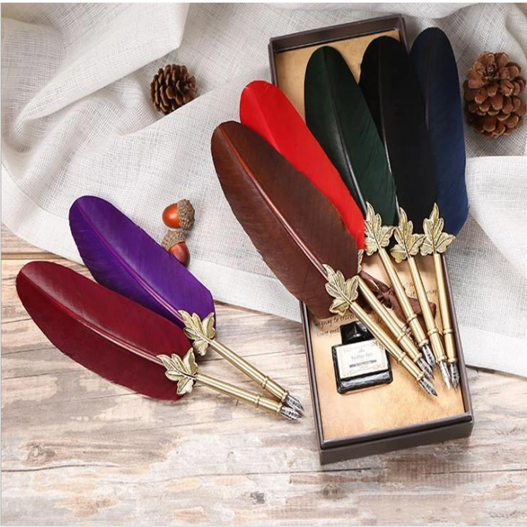 Tüylü Divit Kalem Seti Ve Yaprak Tasarımlı Deri Defter İle Set Özel Bir Hale Geliyor.