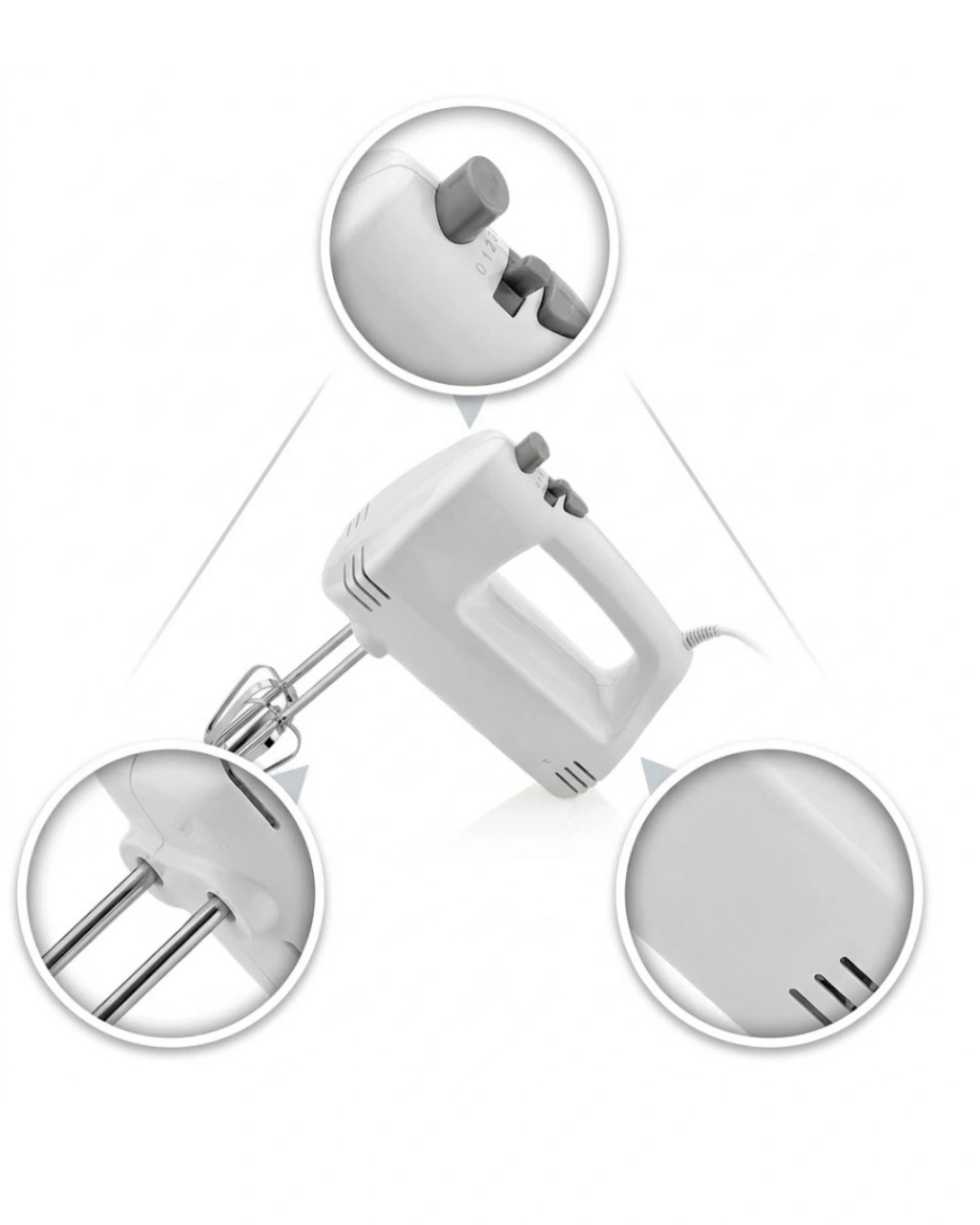 Paslanmaz Çelik Çırpıcılı El Mikseri 250W Çok Kademeli Mutfak Mikseri