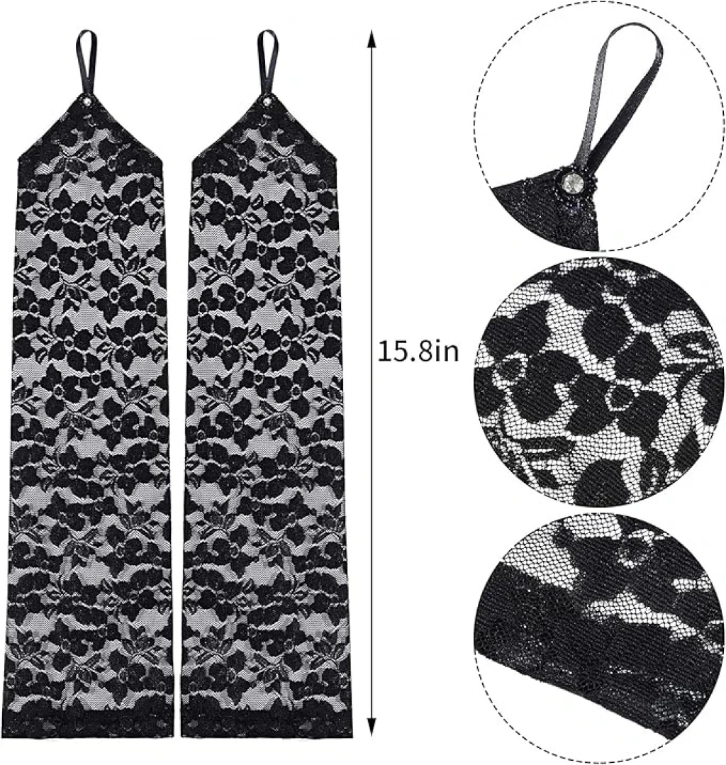 Uzun Zarif Dantel Eldiven Parmaksız Siyah 35 cm