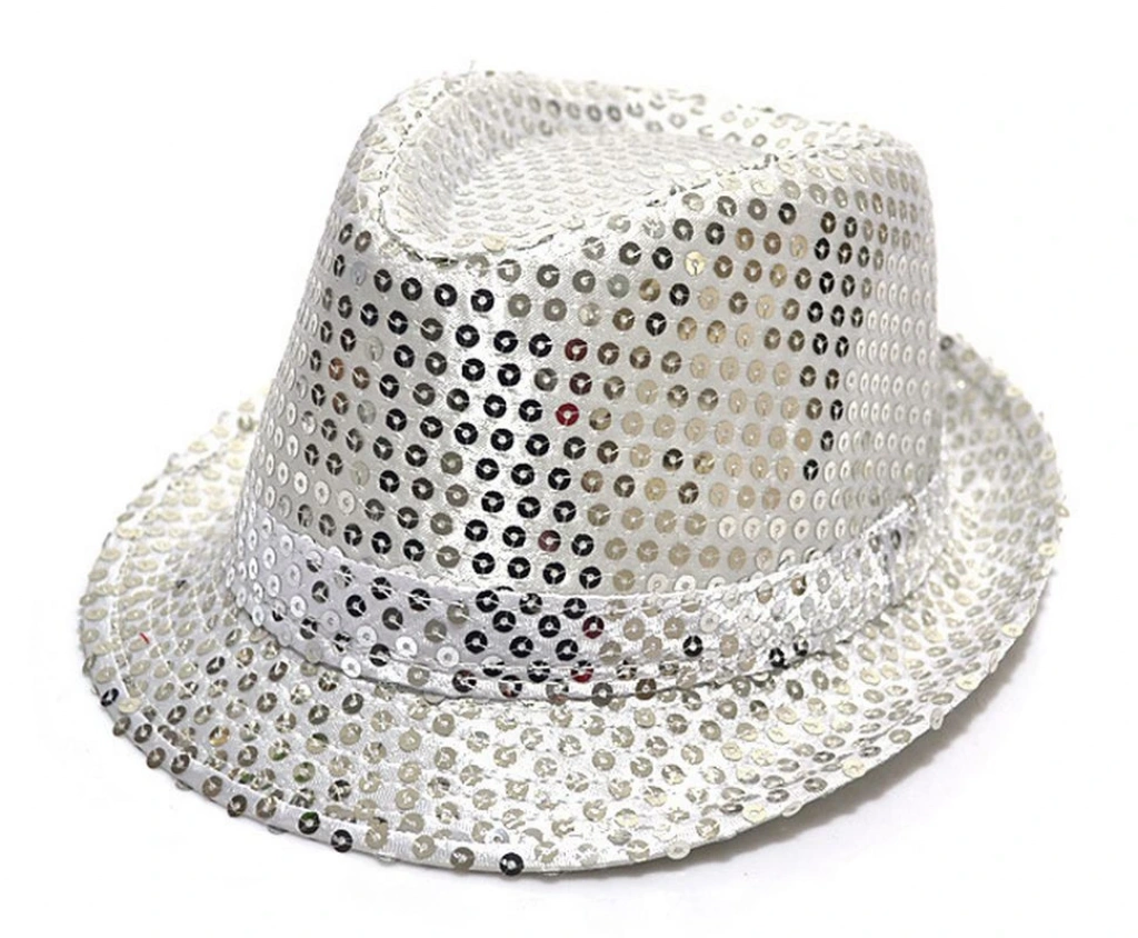 Disko Star Gümüş Payetli Fötr Şapka Yetişkin Boy