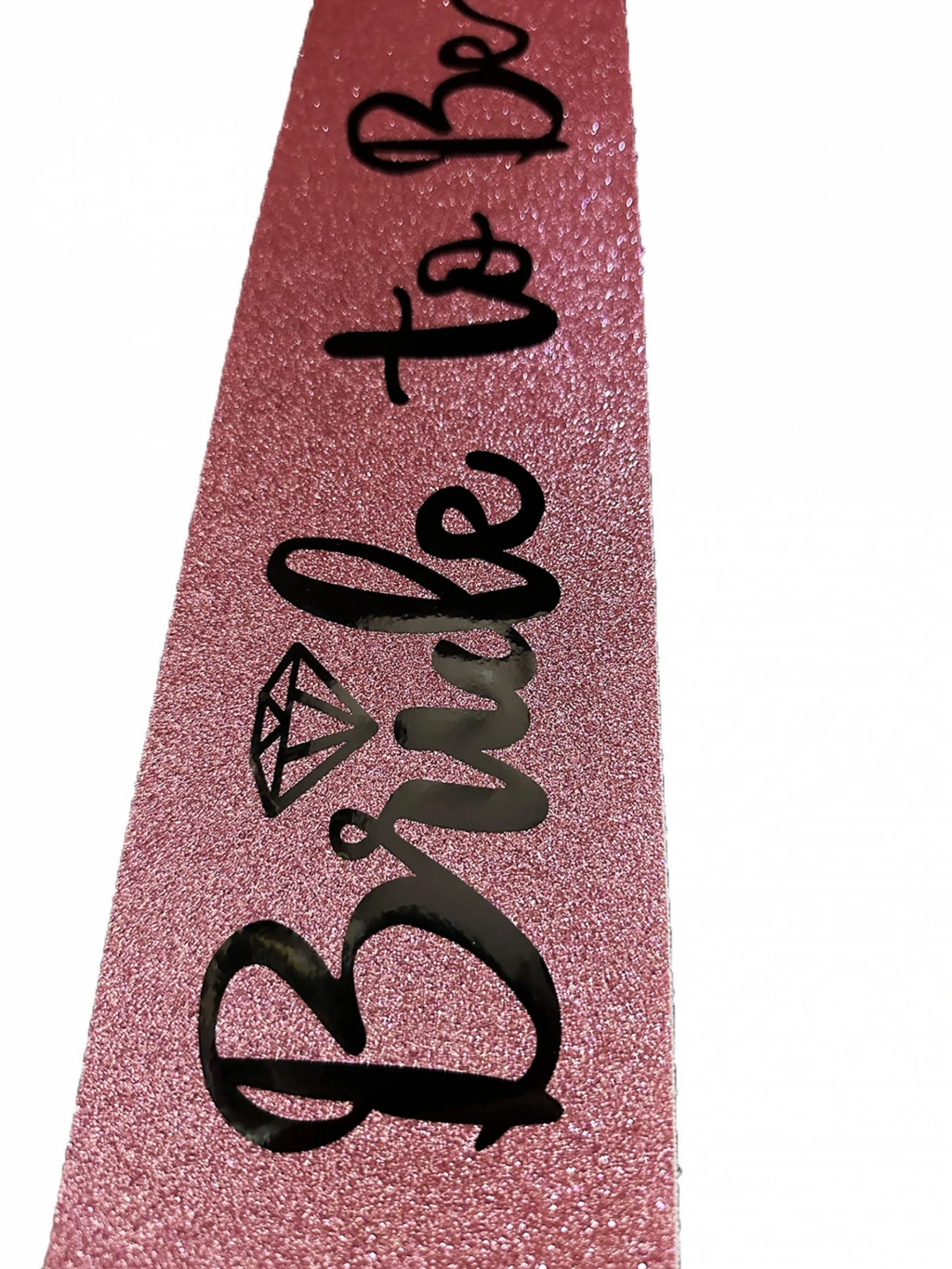 Pembe Üzeri Siyah İtalik Alyanslı Bride To Be Yazılı Simli Işıltılı Kuşak Kemer 10 cm Genişlik (5047)
