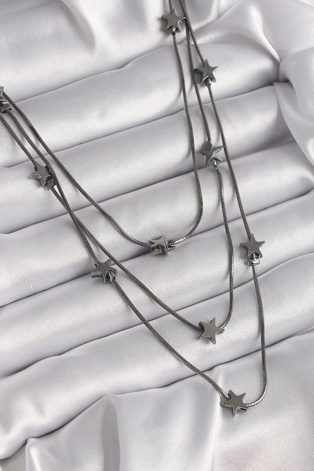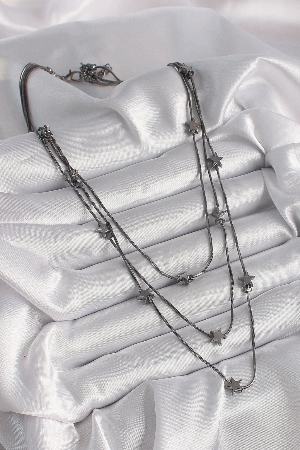 Pirinç Füme Renk 3'Lü Yıldız Model Kadın Kolye