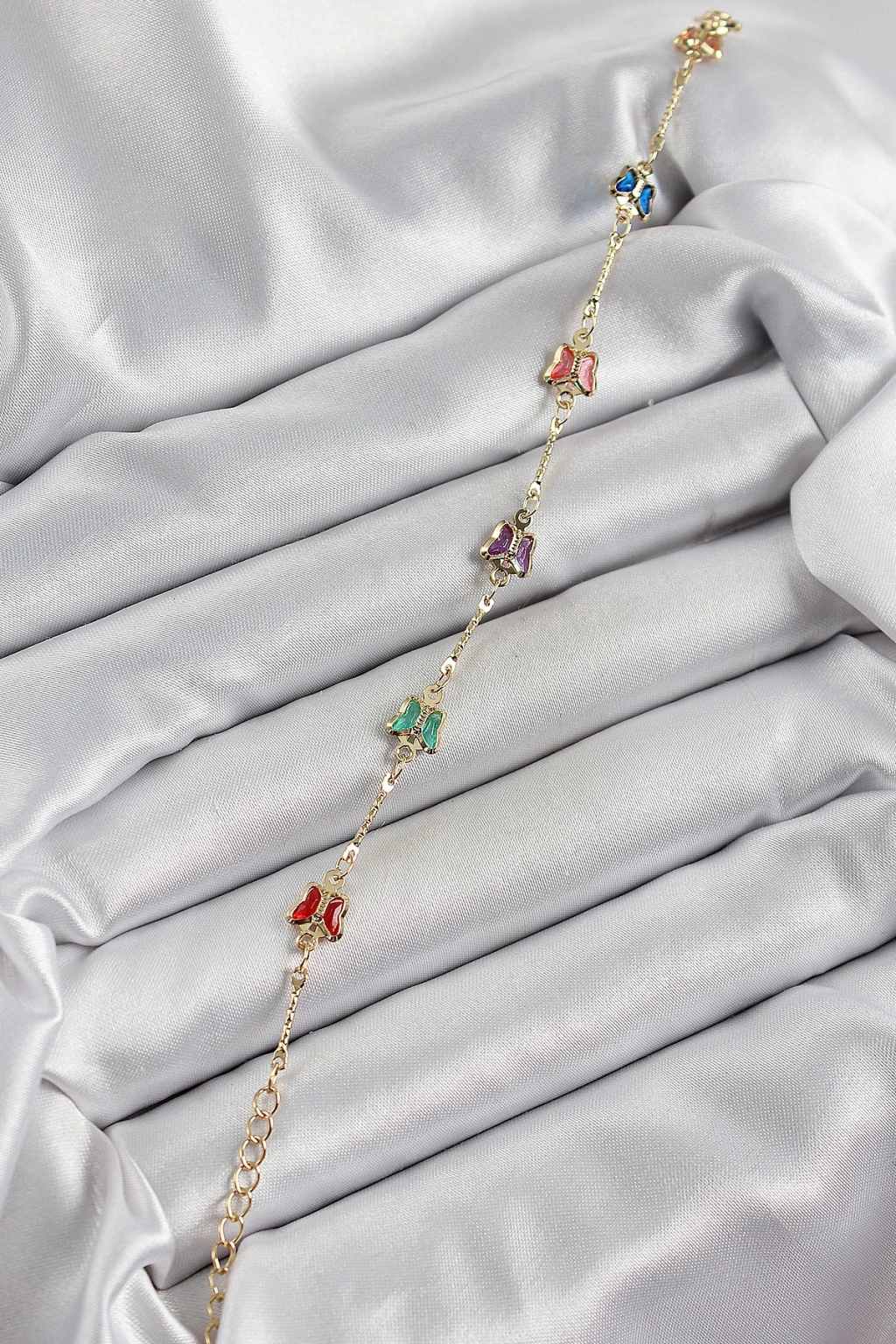 Pirinç Gold Renk Karışık Renk Kelebek Zirkon Taşlı Kadın Bileklik