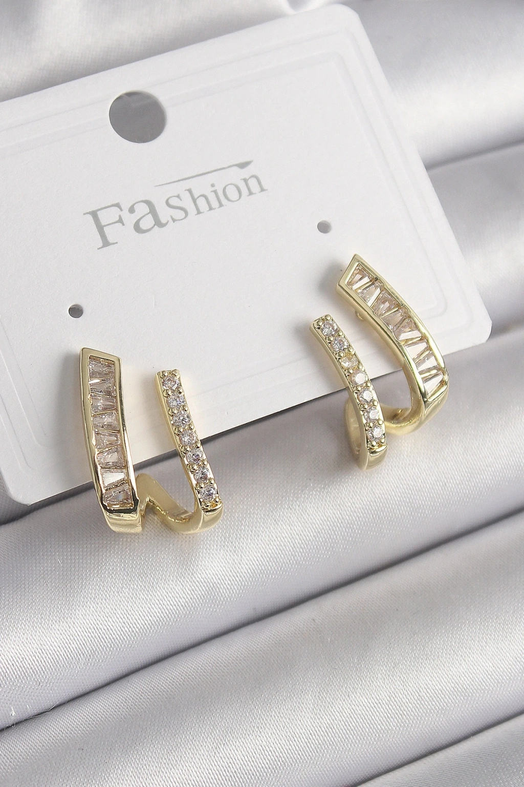 Pirinç Gold Renk Zirkon Taşlı Earcuff Kıkırdak Küpe